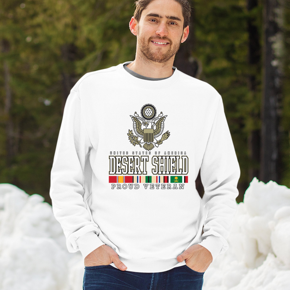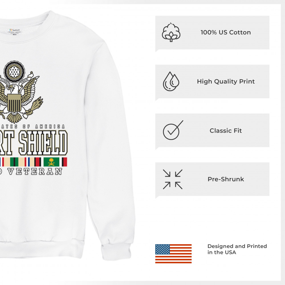 Wear your service with honor with our Desert Shield veteran design, a tribute to the valorous U.S. Army soldiers who stand for freedom, duty, and resilience.