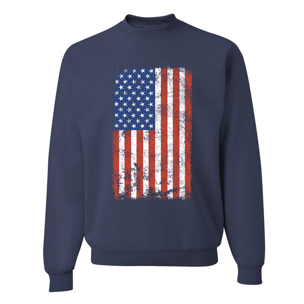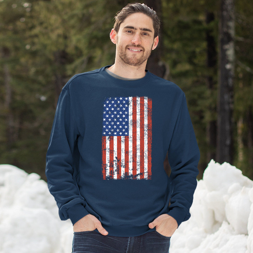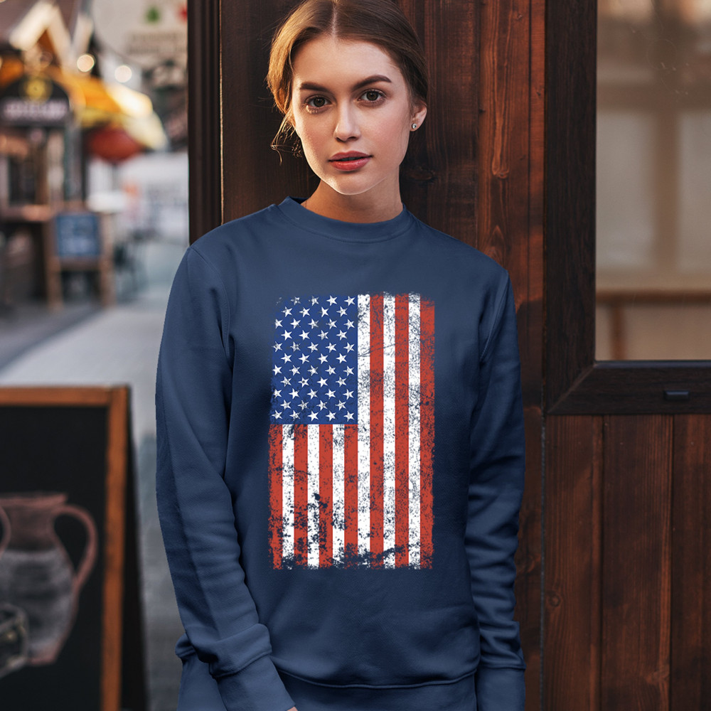 DISTRESSED GRUNGE AMERICAN FLAG sweatshirt vintage 4th of july usa crewneck navy blue