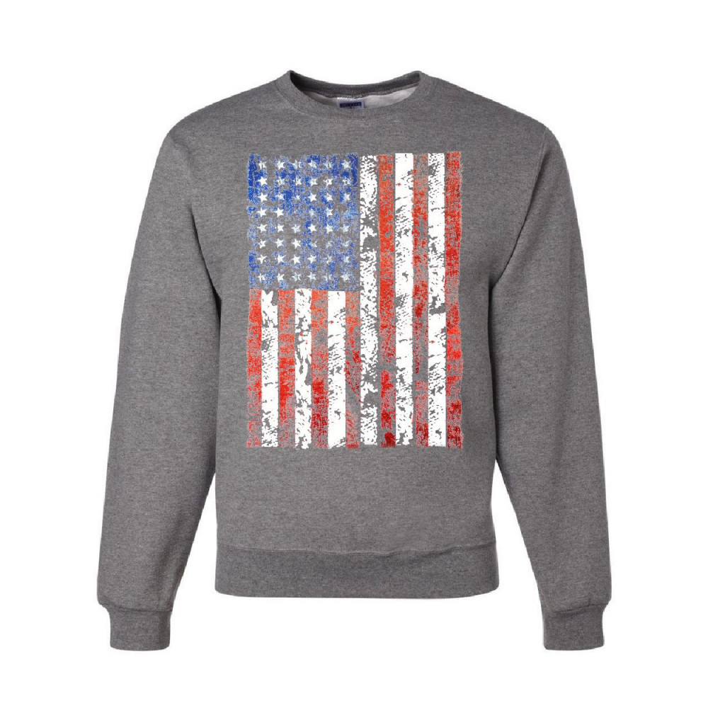 DISTRESSED US FLAG crew neck sweatshirt american flag gray
