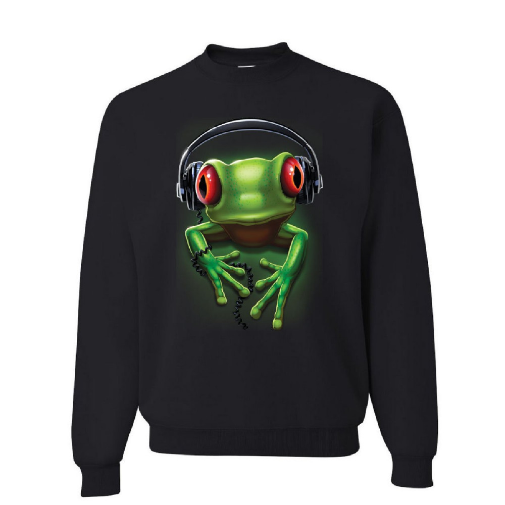 DJ FROG WITH HEADPHONES sweatshirt cute animal music wildlife rock sweater black
