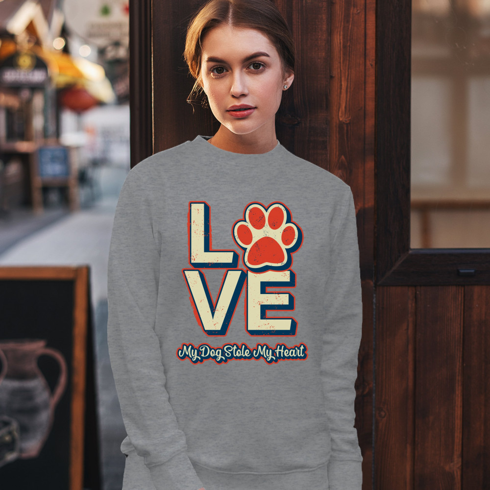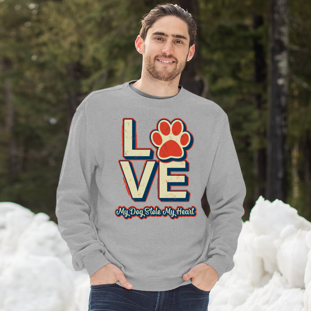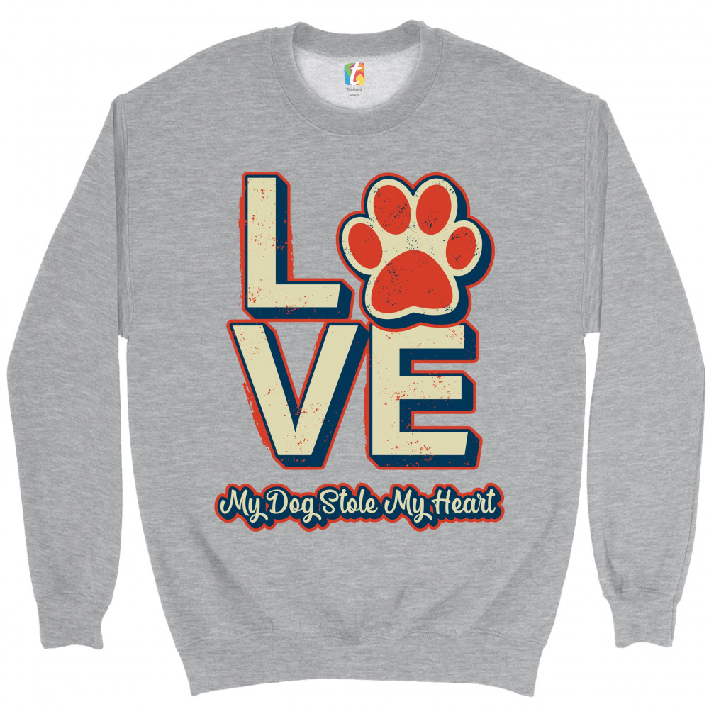 DOG PAW LOVE sweatshirt my dog stole my heart pet owner animal lover crewneck gray