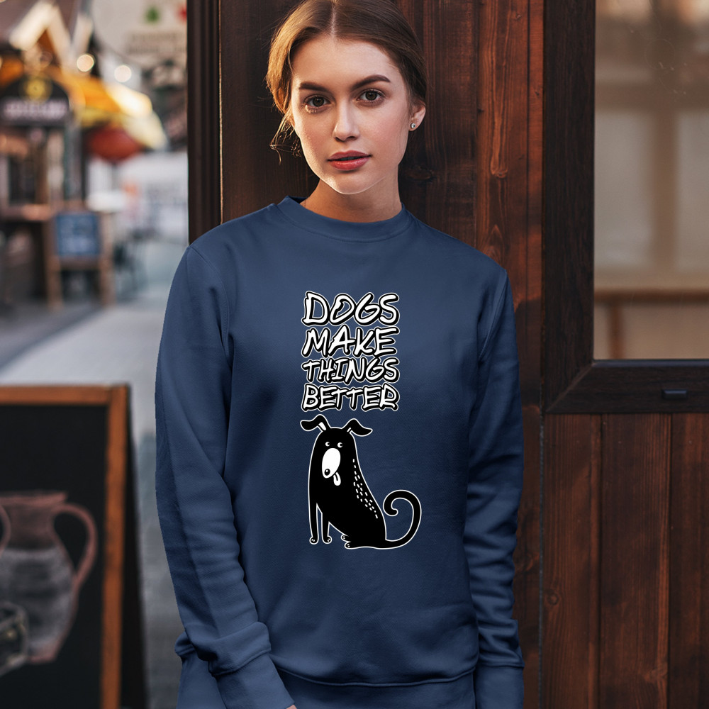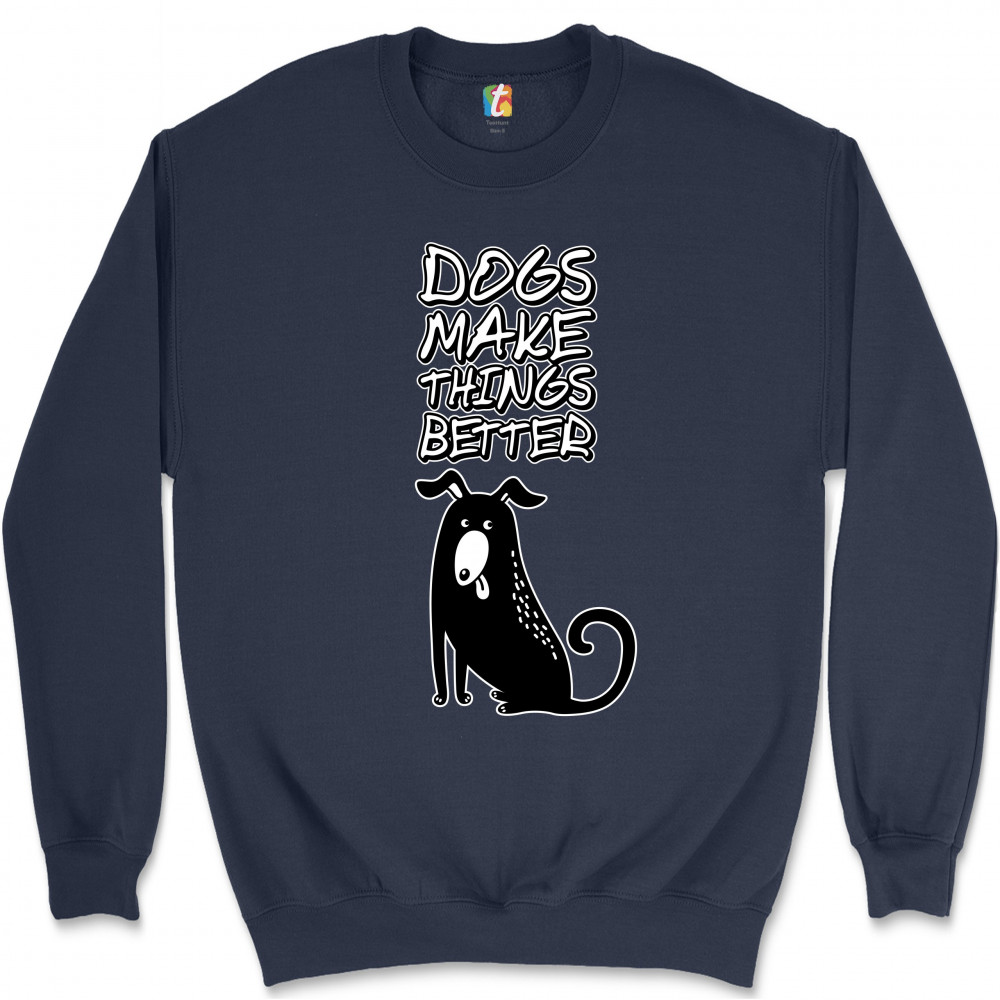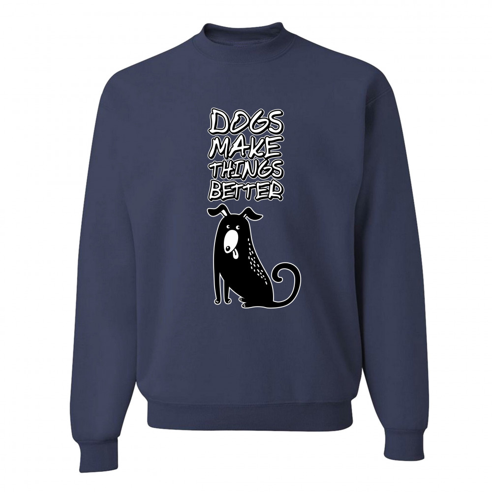 DOGS MAKE THINGS BETTER sweatshirt animal pet owner i love my dog crewneck navy blue