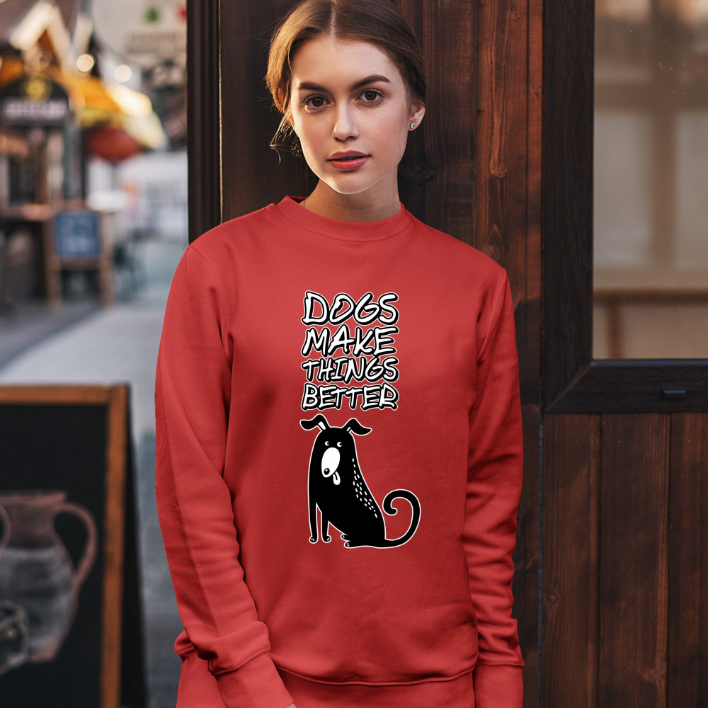 DOGS MAKE THINGS BETTER sweatshirt animal pet owner i love my dog crewneck red