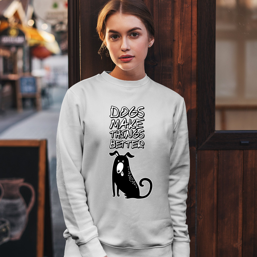 DOGS MAKE THINGS BETTER sweatshirt animal pet owner i love my dog crewneck white