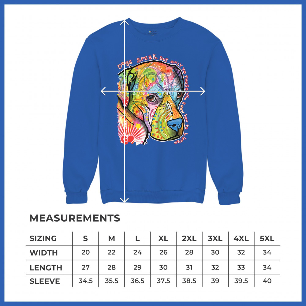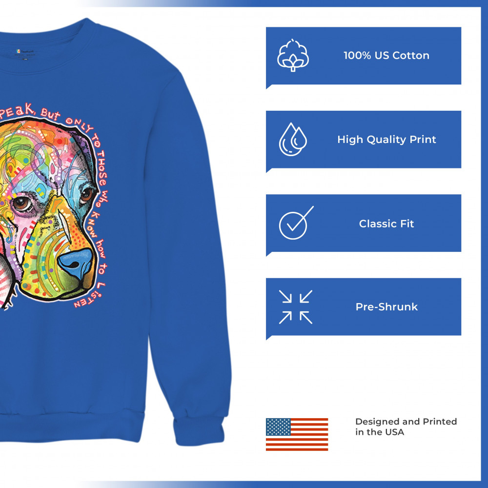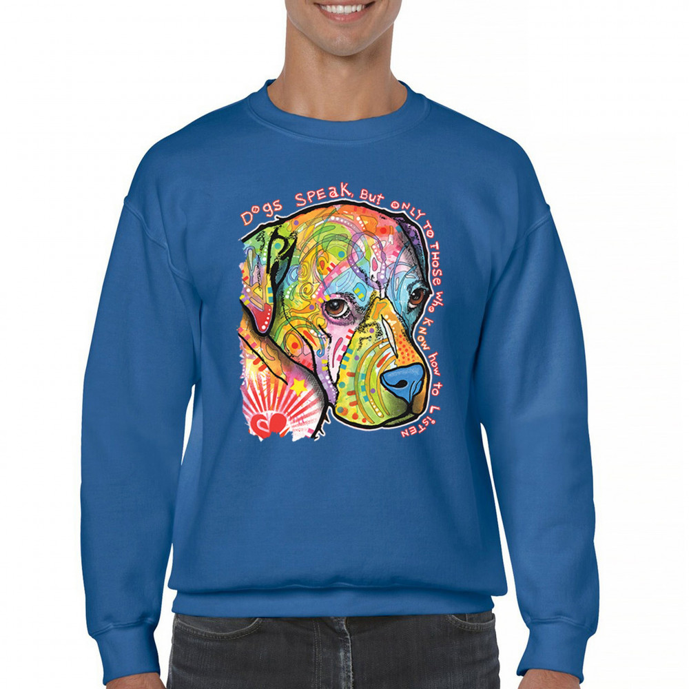 DOGS SPEAK TO THOSE WHO LISTEN sweatshirt dean russo neon pet puppy crewneck royal blue