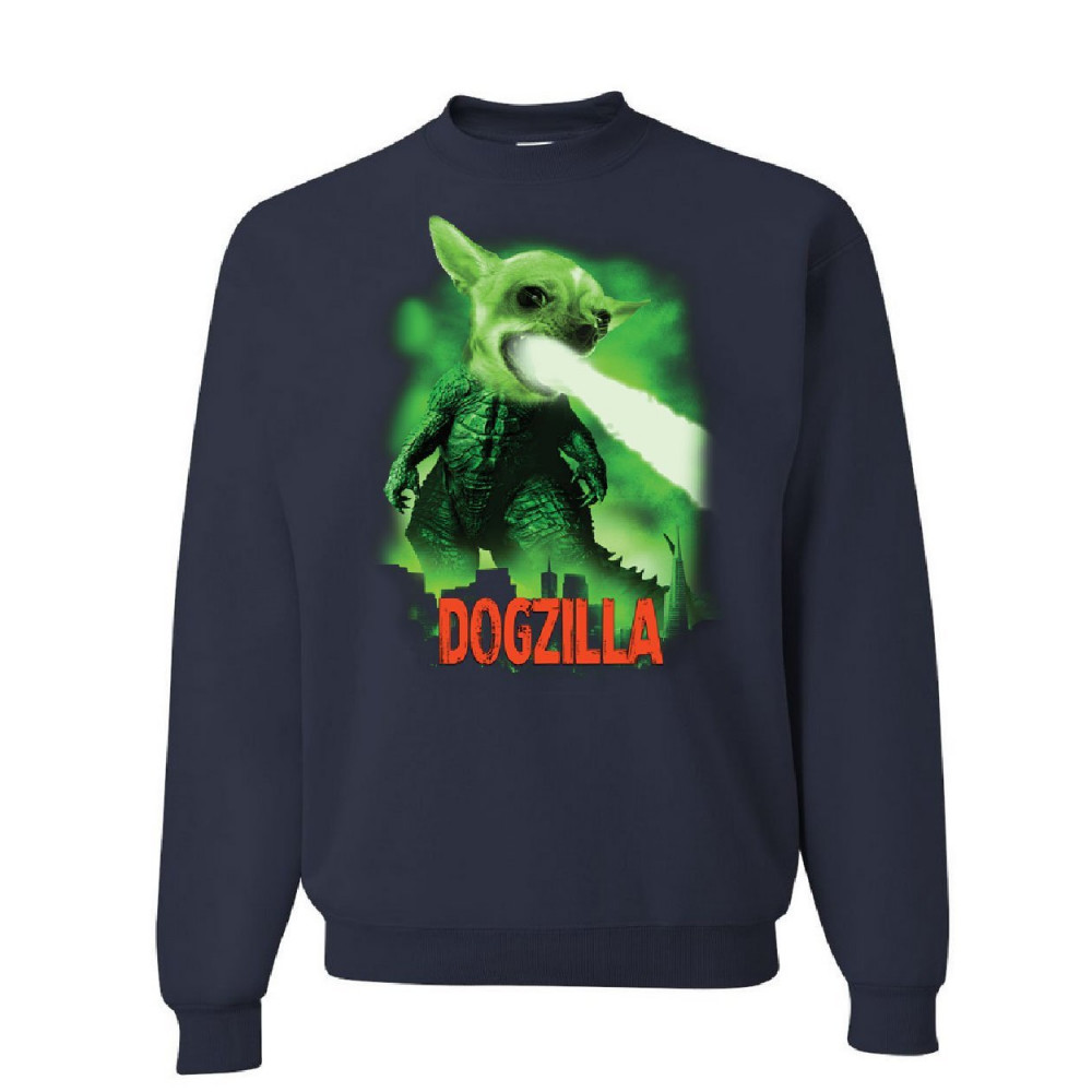 DOGZILLA FUNNY sweatshirt movie parody dog pet lovers atomic breath sweater navy blue