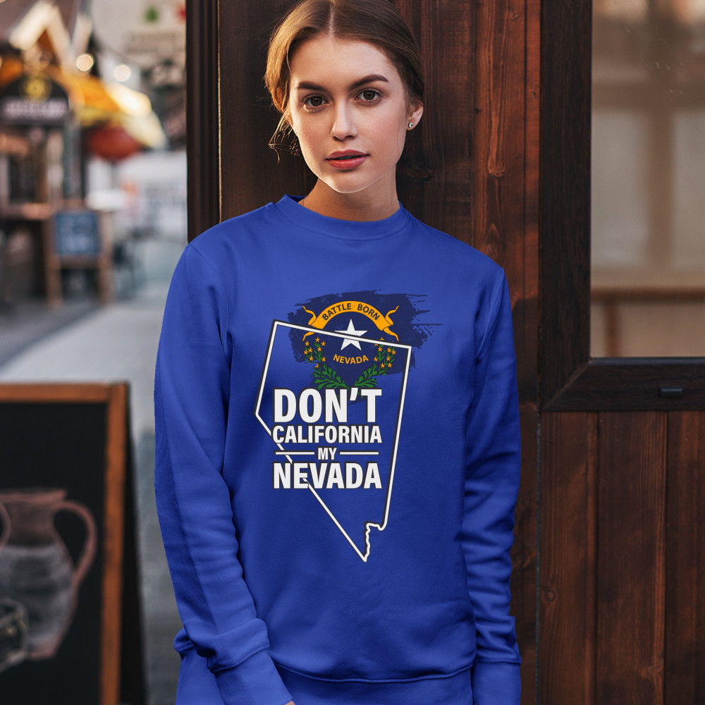 DON'T CALIFORNIA MY NEVADA sweatshirt i love my battle born state crewneck royal blue