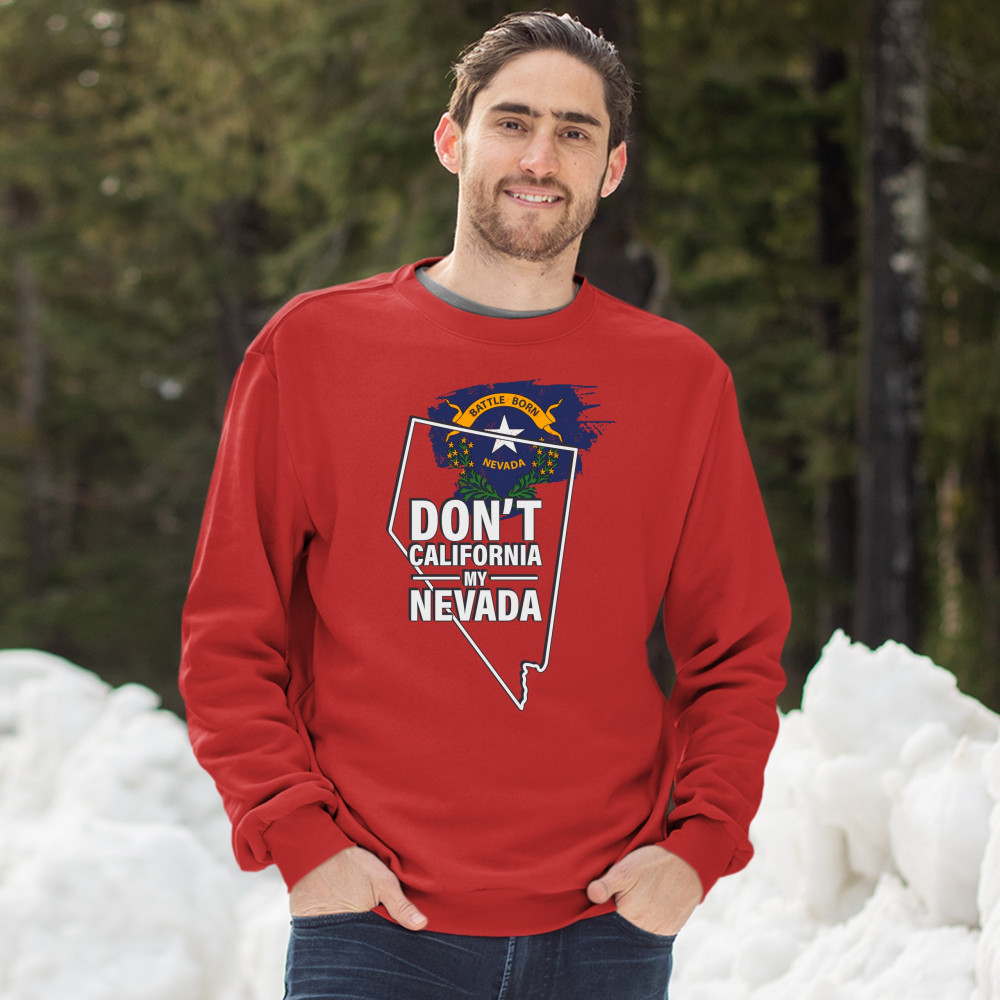 A political print featuring a silhouette of the state of Nevada and it's flag on the inside. The print says: "Don't California my Nevada". A great choice for anyone who is concerned for a huge number of Californians moving to their beloved state.