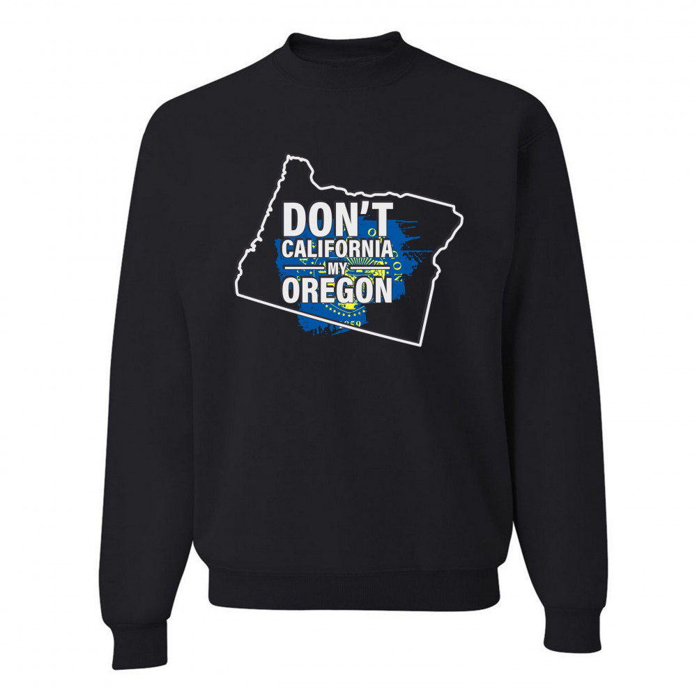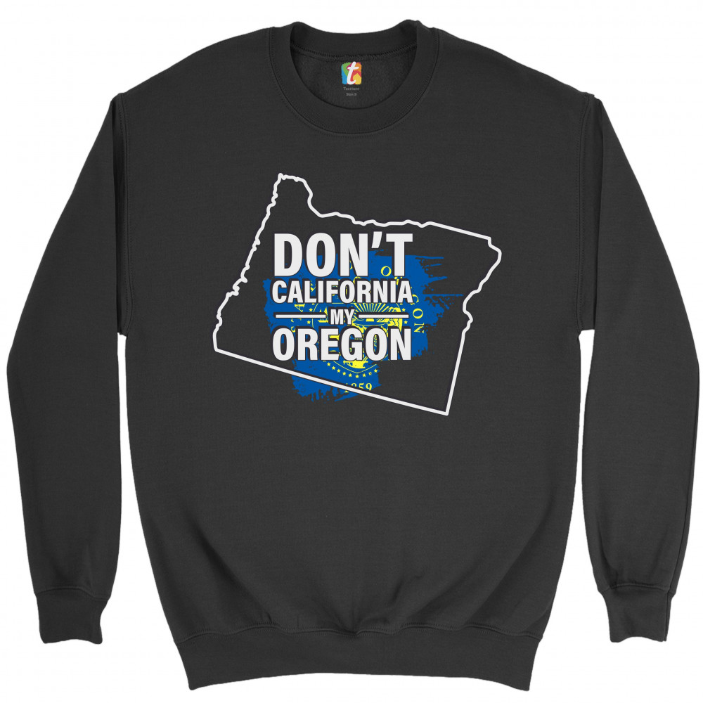 A political print featuring a silhouette of the state of Oregon and the Seal of the State of Oregon inside of it. The print says: "Don't California my Oregon". A great choice for anyone who is concerned for a huge number of Californians moving to their be