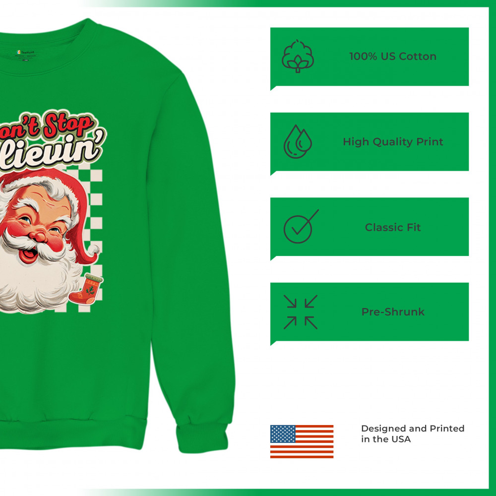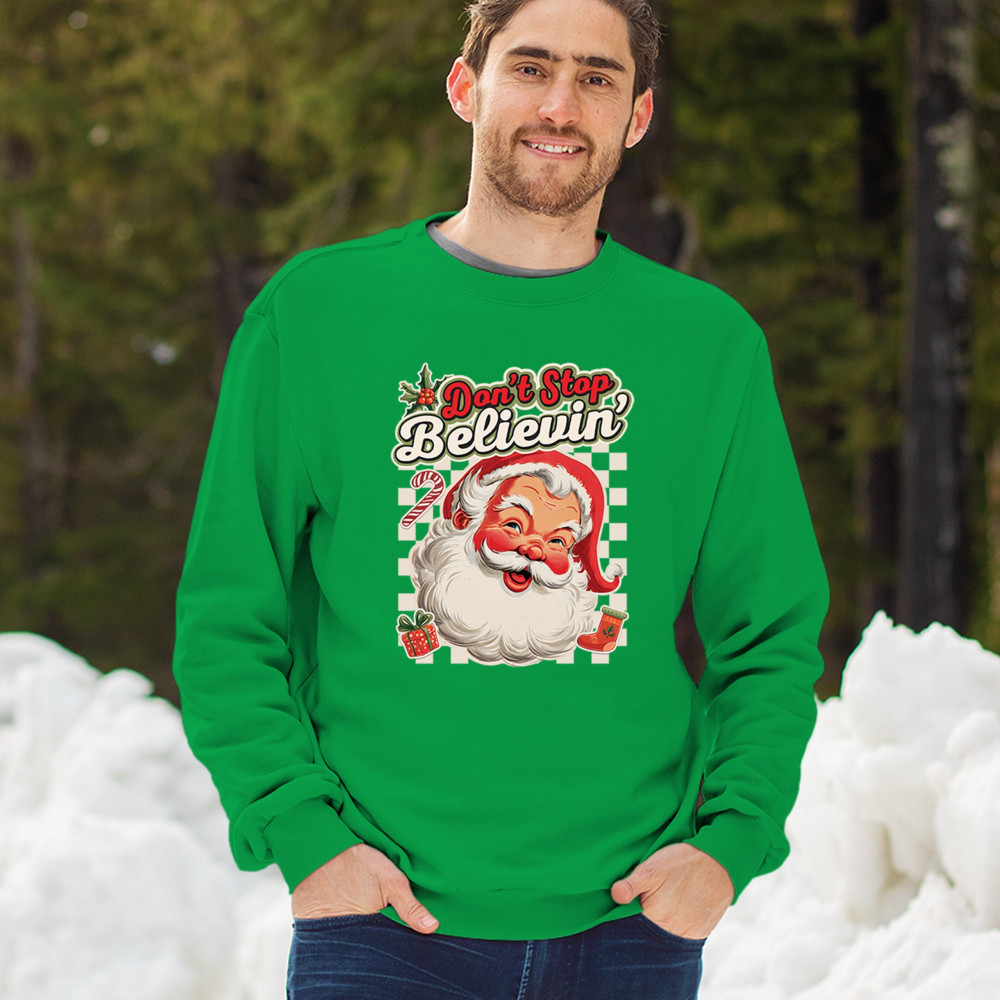 Spread holiday cheer with this “Don’t Stop Believing†Santa Claus shirt that blends classic Christmas spirit with cozy winter charm. Perfect for festive parties, family gatherings, or relaxing by the fire, this design captures Jingle Bells joy, Merry Xmas fun, Santa Claus magic, Reindeer delight, Rudolph glow, Snowman charm, and Christmas tree style for the perfect seasonal outfit.