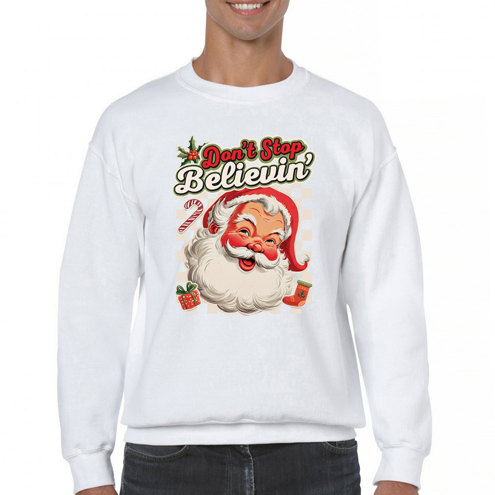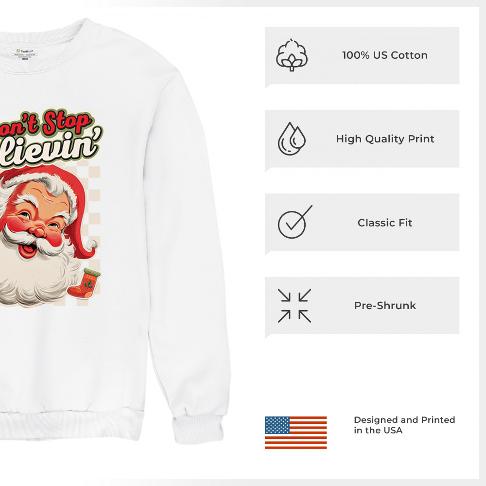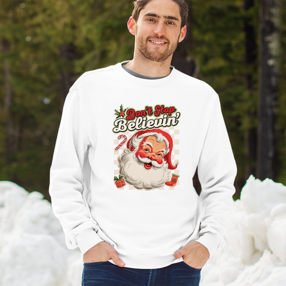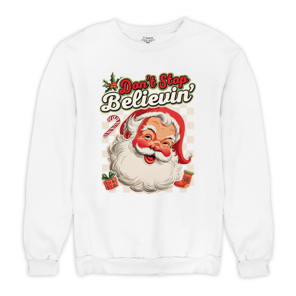 Spread holiday cheer with this “Don’t Stop Believing†Santa Claus shirt that blends classic Christmas spirit with cozy winter charm. Perfect for festive parties, family gatherings, or relaxing by the fire, this design captures Jingle Bells joy, Merry Xmas fun, Santa Claus magic, Reindeer delight, Rudolph glow, Snowman charm, and Christmas tree style for the perfect seasonal outfit.