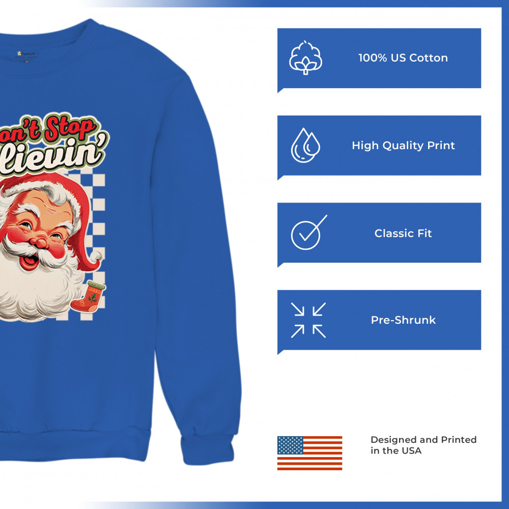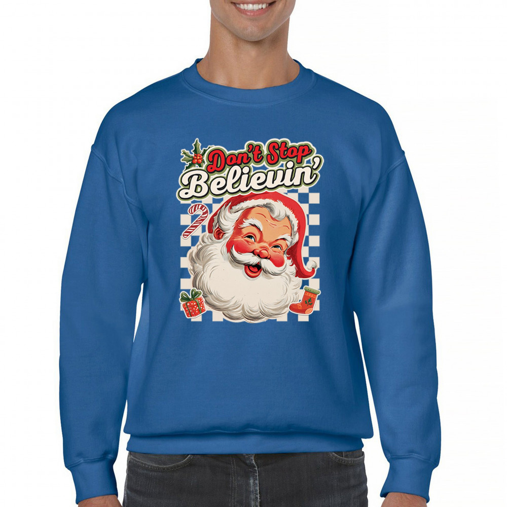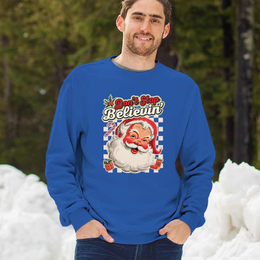 Spread holiday cheer with this “Don’t Stop Believing†Santa Claus shirt that blends classic Christmas spirit with cozy winter charm. Perfect for festive parties, family gatherings, or relaxing by the fire, this design captures Jingle Bells joy, Merry Xmas fun, Santa Claus magic, Reindeer delight, Rudolph glow, Snowman charm, and Christmas tree style for the perfect seasonal outfit.