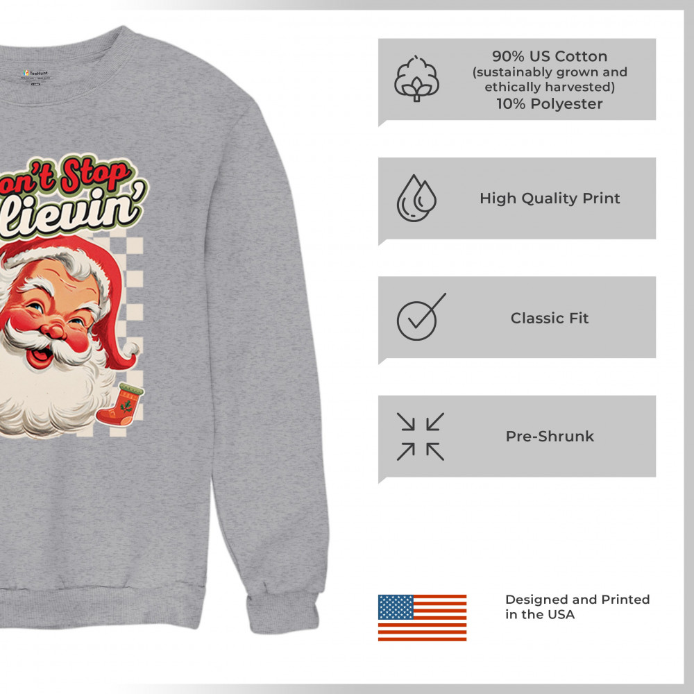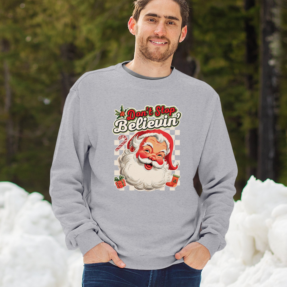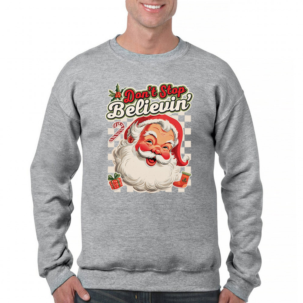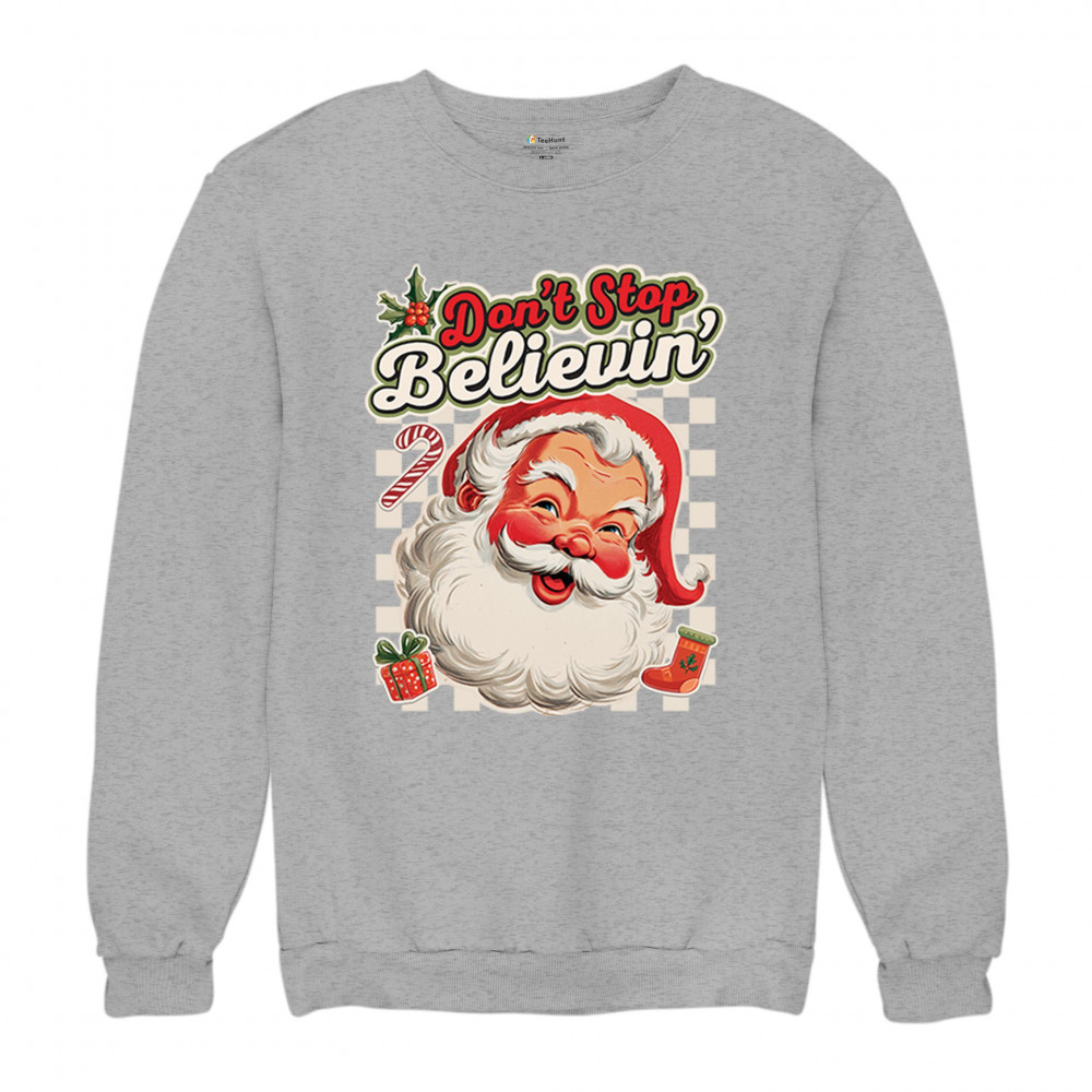 Spread holiday cheer with this “Don’t Stop Believing†Santa Claus shirt that blends classic Christmas spirit with cozy winter charm. Perfect for festive parties, family gatherings, or relaxing by the fire, this design captures Jingle Bells joy, Merry Xmas fun, Santa Claus magic, Reindeer delight, Rudolph glow, Snowman charm, and Christmas tree style for the perfect seasonal outfit.