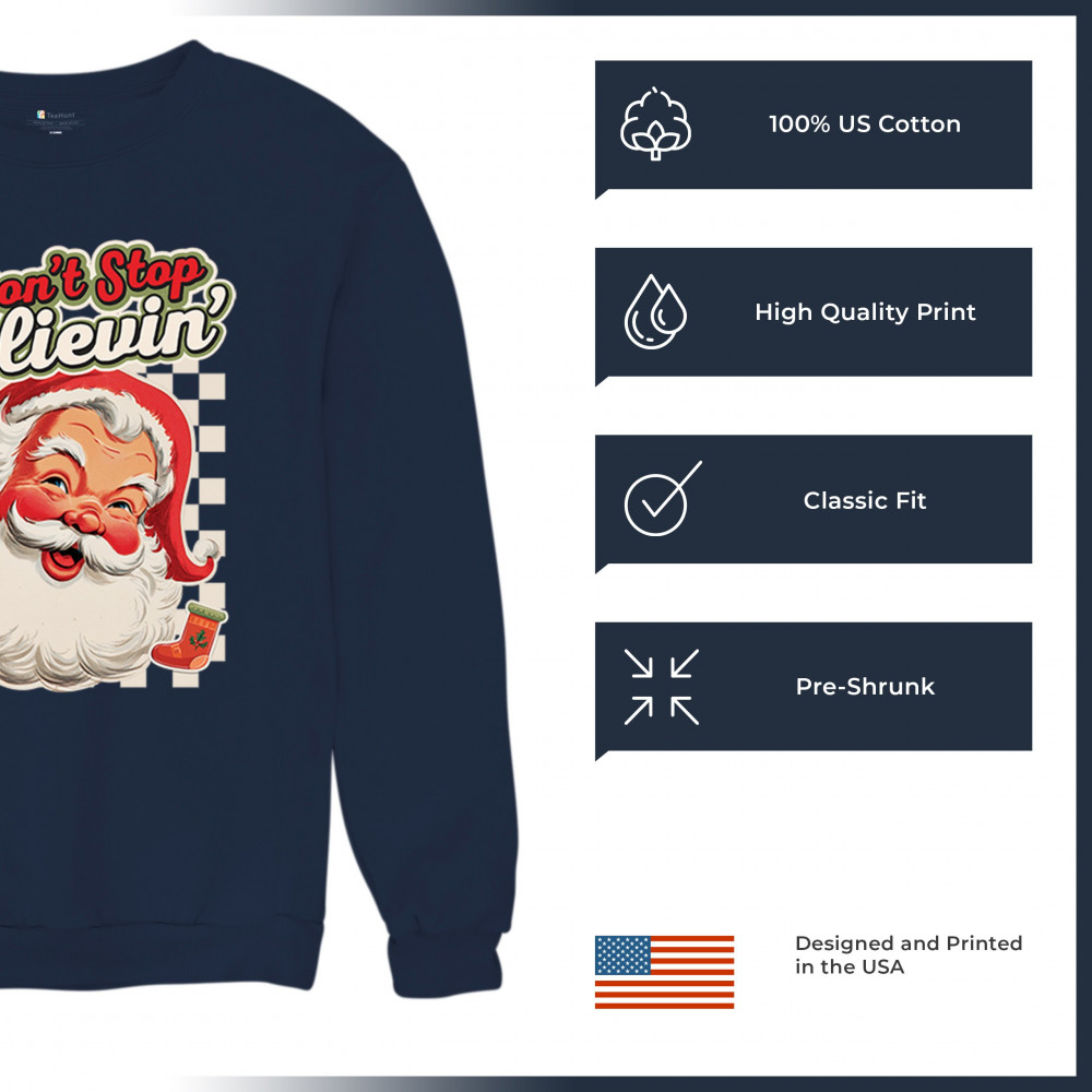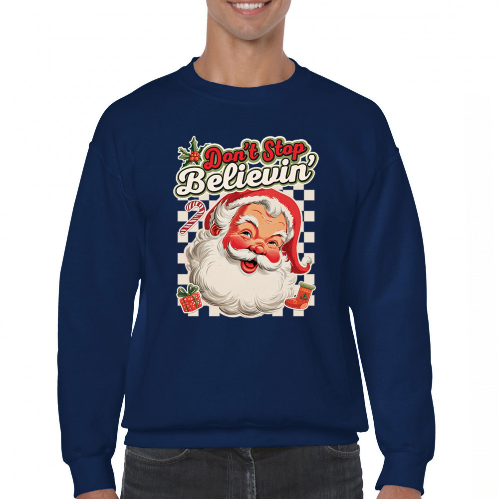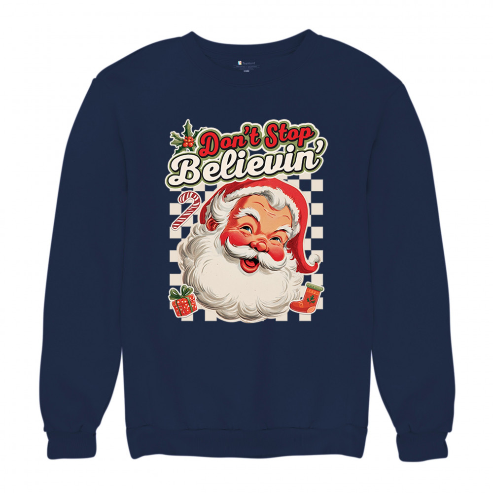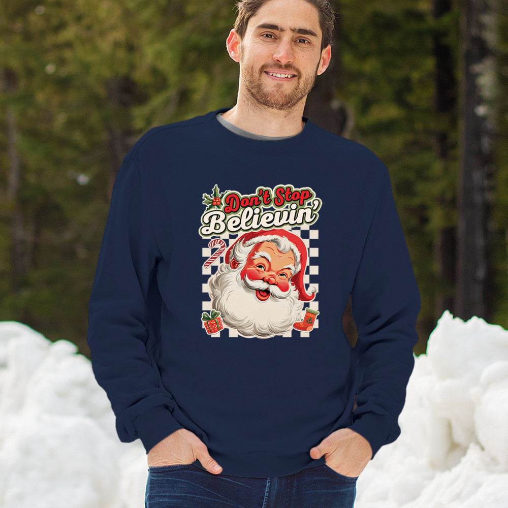 Spread holiday cheer with this “Don’t Stop Believing†Santa Claus shirt that blends classic Christmas spirit with cozy winter charm. Perfect for festive parties, family gatherings, or relaxing by the fire, this design captures Jingle Bells joy, Merry Xmas fun, Santa Claus magic, Reindeer delight, Rudolph glow, Snowman charm, and Christmas tree style for the perfect seasonal outfit.