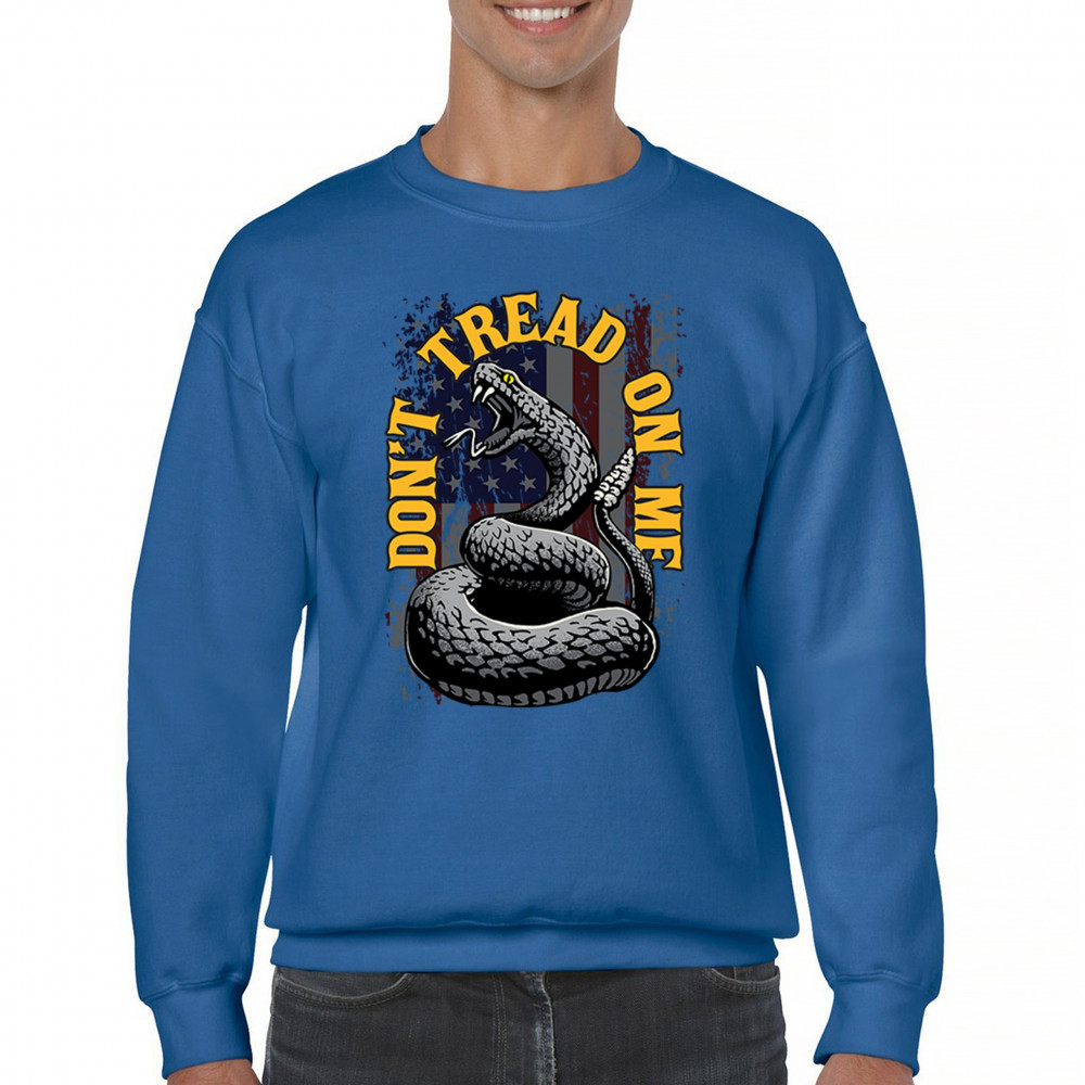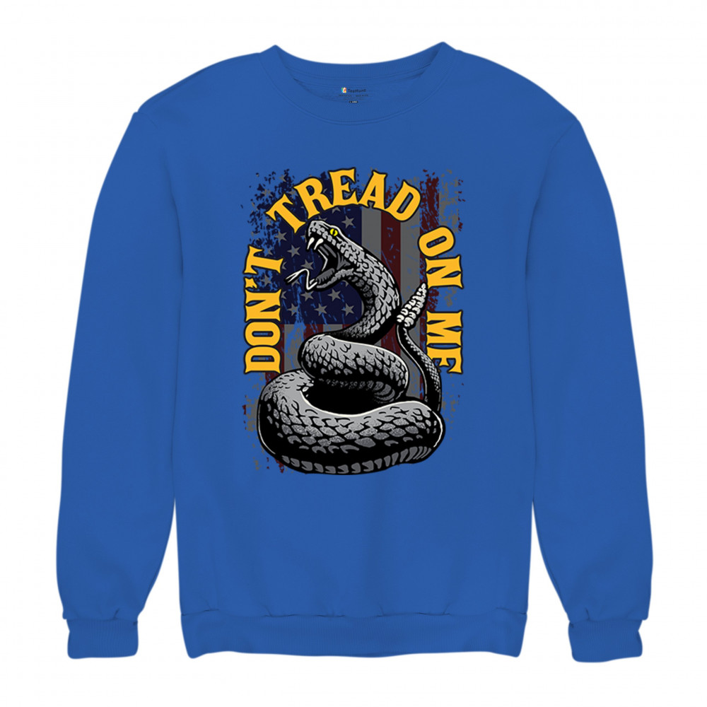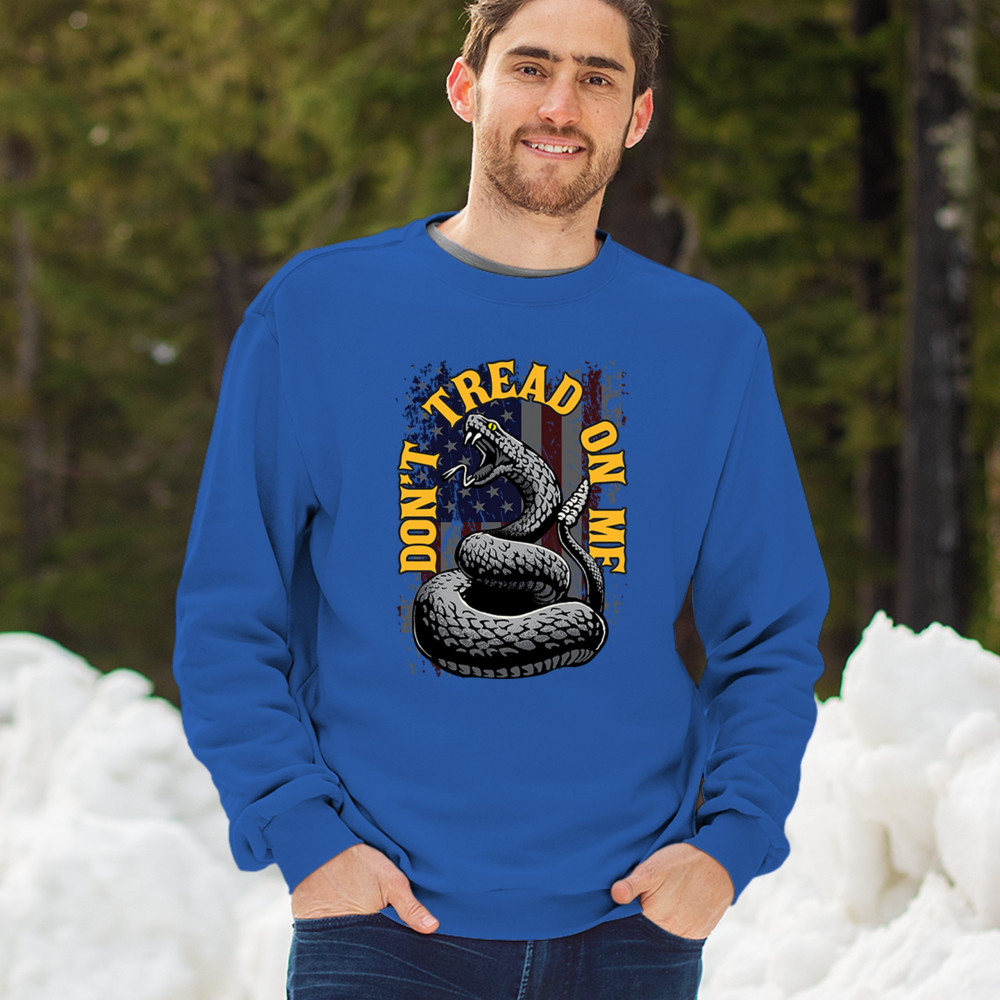 Bold "Don't Tread on Me" design with snake and American flag. Ideal for patriots. Show your love for freedom and independence.