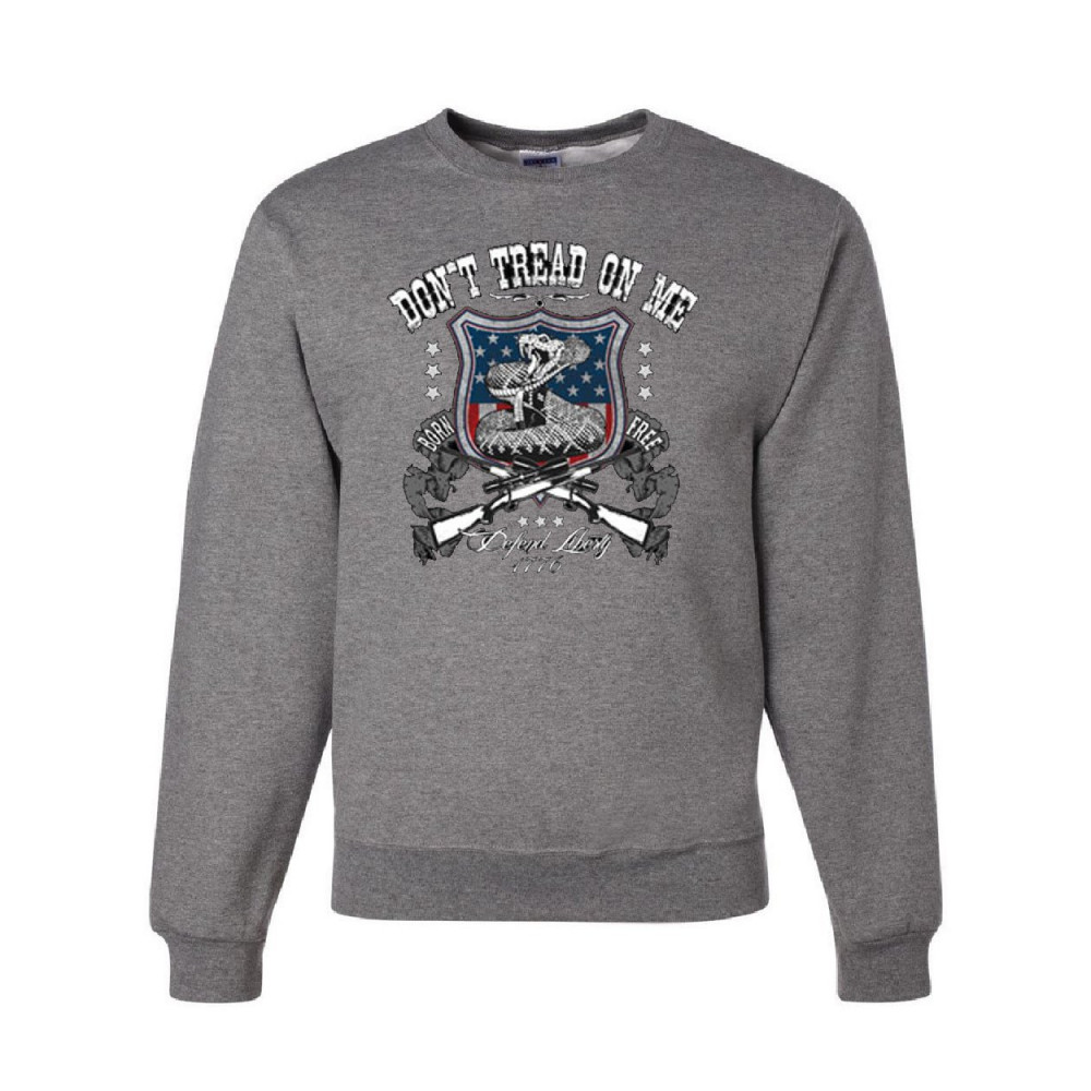 DON'T TREAD ON ME don’t tread on me crew neck sweatshirt defend liberty gadsden flag gray