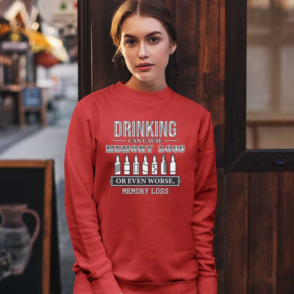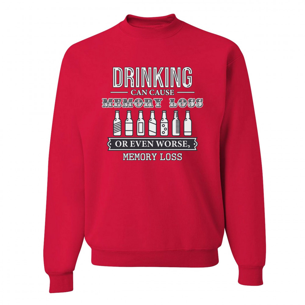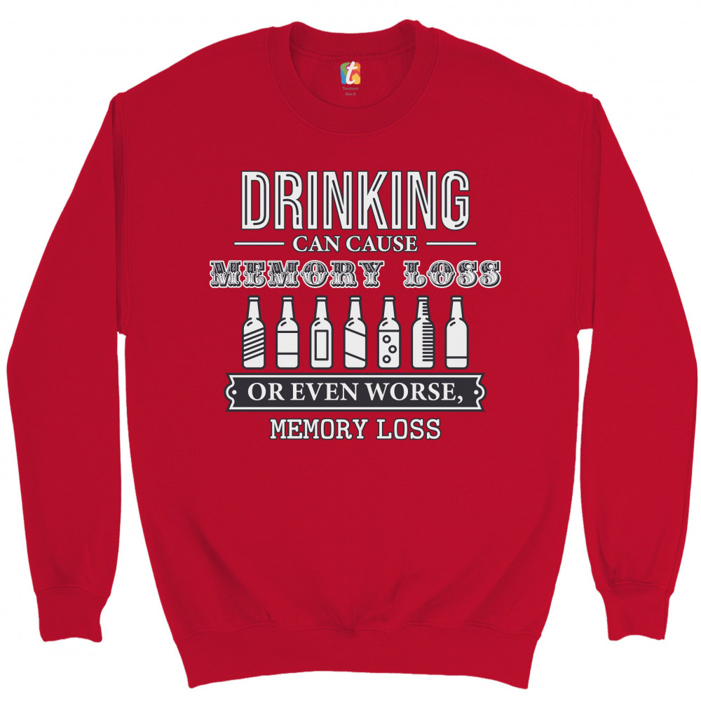 DRINKING CAN CAUSE MEMORY LOSS sweatshirt alcohol beer inappropriate crewneck red