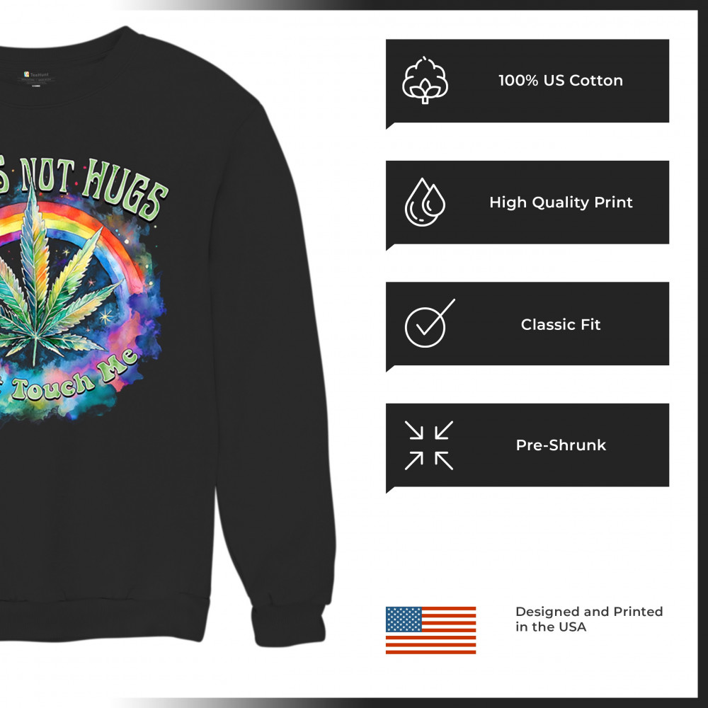 This bold marijuana leaf design blends psychedelic colors with a rainbow flair to create a loud, colorful statement. Great for weed lovers who value space, it's the perfect look for expressing antisocial vibes. Whether you're at festivals, smokeouts, or chilling solo, this cannabis design mixes humor, independence, and stoner culture with unapologetic style.
