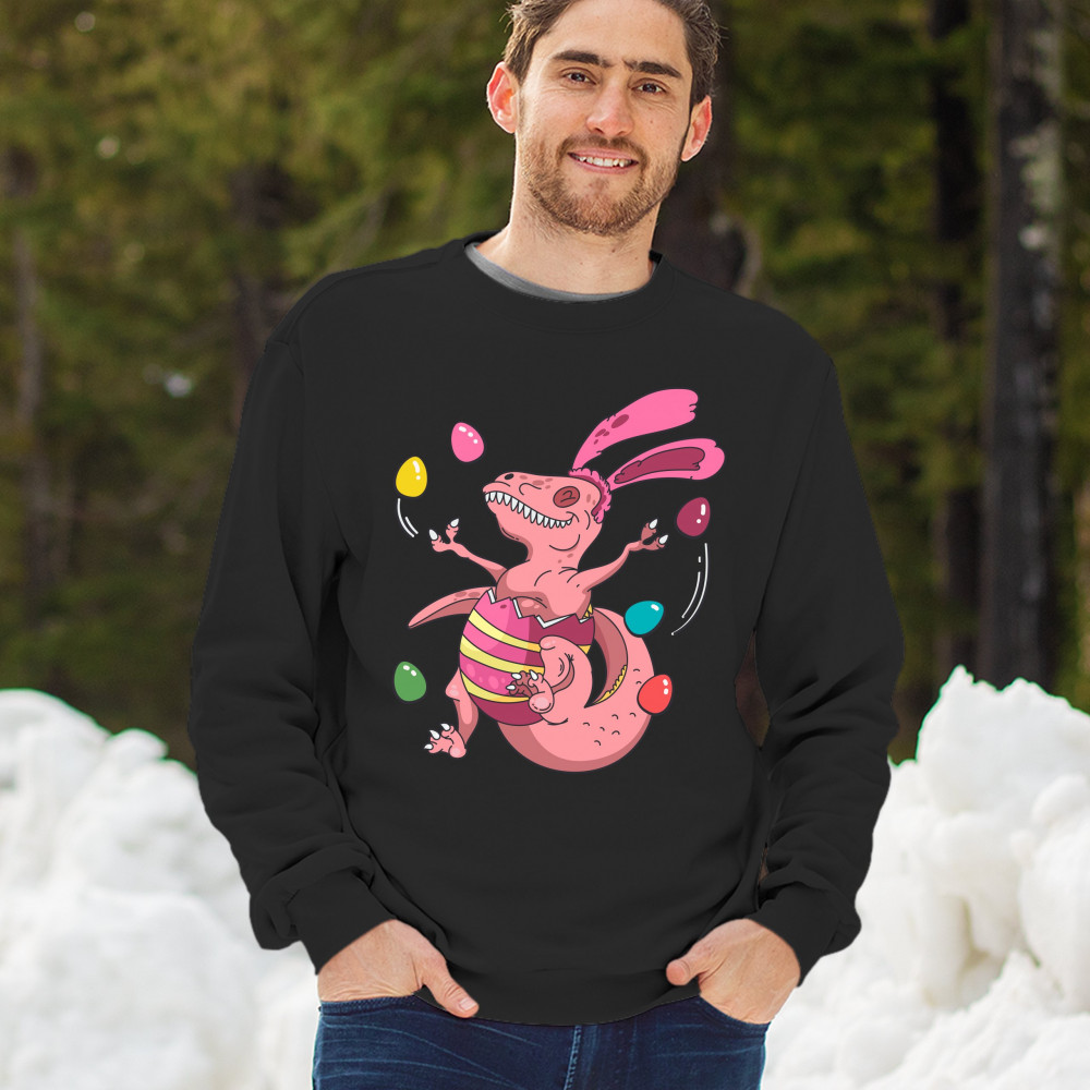 EASTER EGG T-REX sweatshirt happy easter bunny dinosaur egg hunt crewneck black