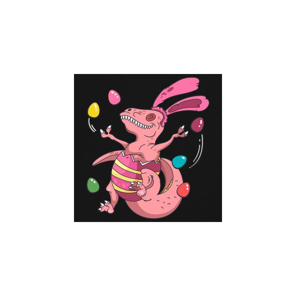 A print displaying a pink Tyrannosaurus Rex with rabbit ears hatching from an Easter egg surrounded by smaller eggs. A great gift for a religious person for Easter, Christmas or any other religious holiday.