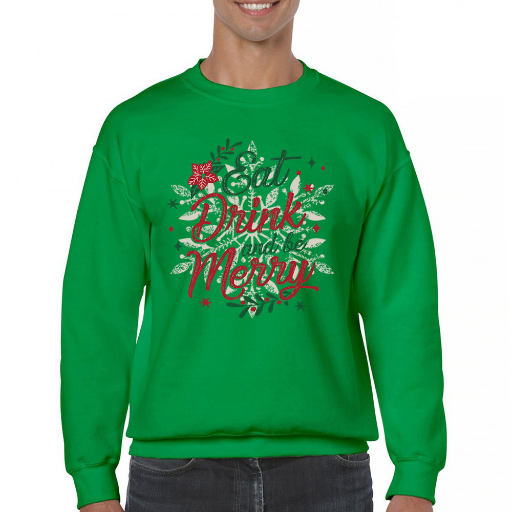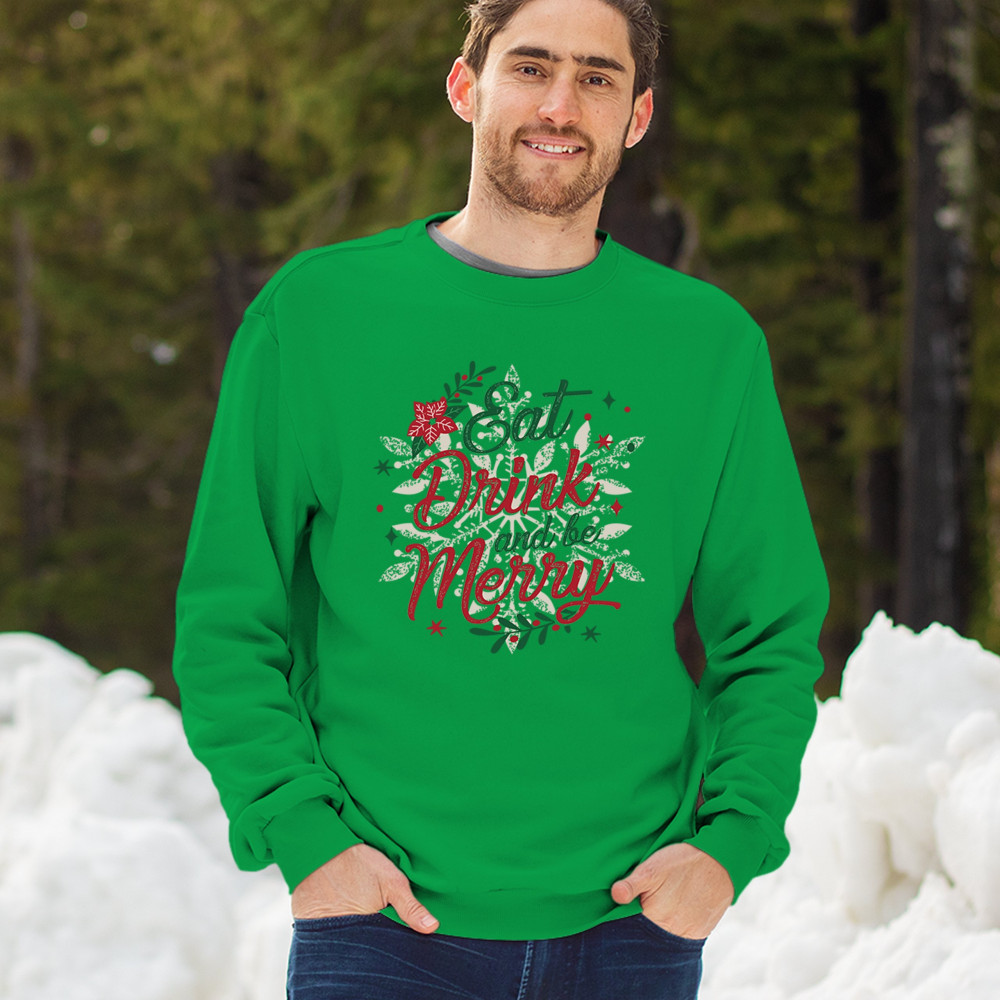 Bring the joy of the season with this "Eat, Drink, and Be Merry" design, crafted to make every holiday gathering a bit brighter. Ideal for cozy holiday mornings, family gatherings, Secret Santa gifts, or festive office parties, this piece captures the spirit of Christmas. Perfect for matching group sets or as a thoughtful holiday present, it’s designed in classic Christmas colors to complement the festive atmosphere. Let this design bring warmth and joy to your celebrations!