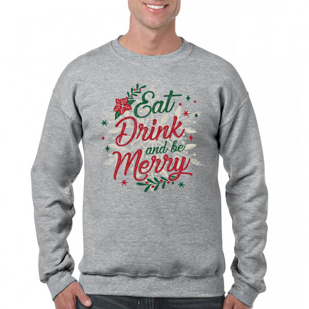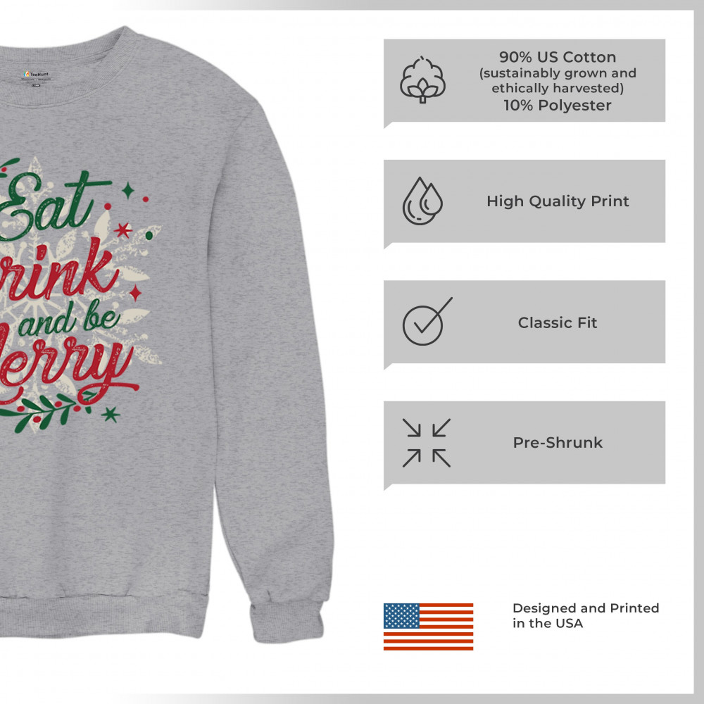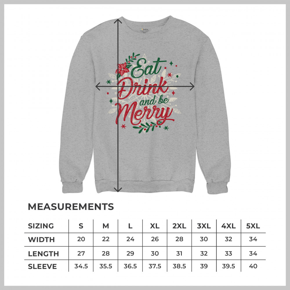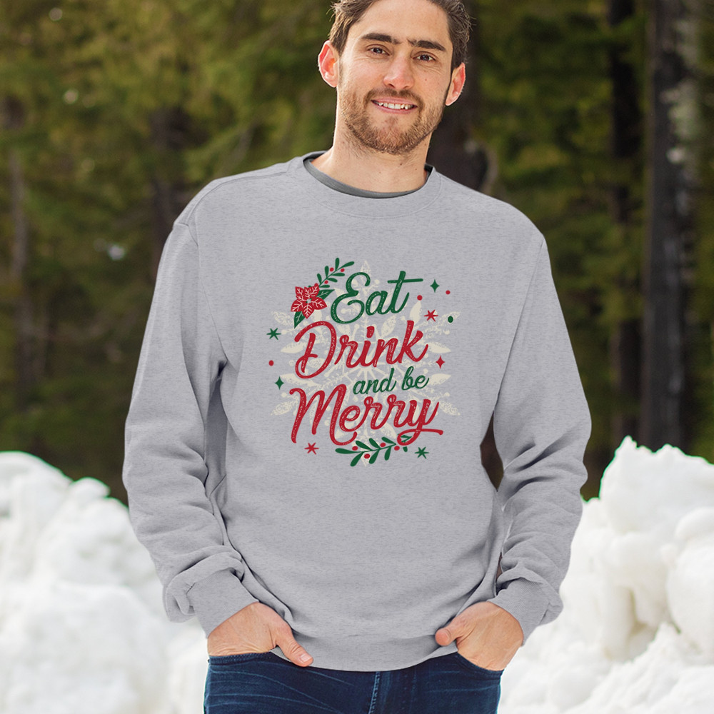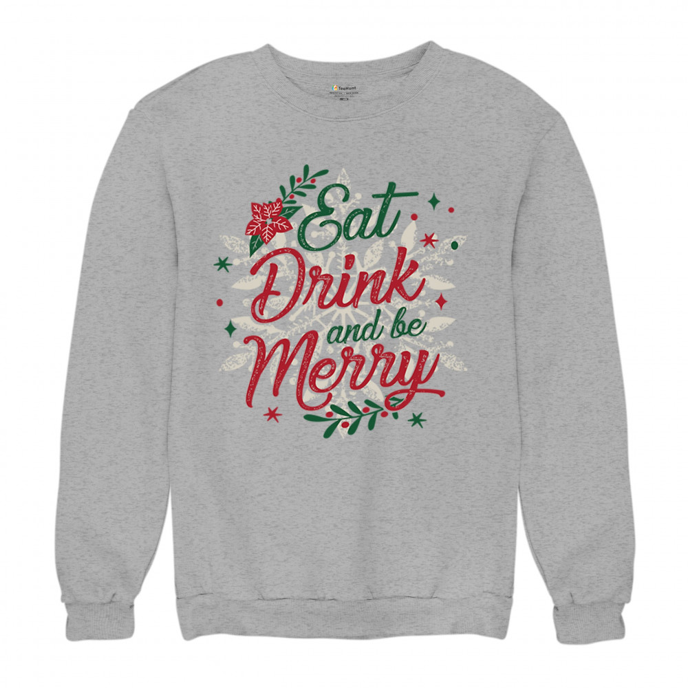 Bring the joy of the season with this "Eat, Drink, and Be Merry" design, crafted to make every holiday gathering a bit brighter. Ideal for cozy holiday mornings, family gatherings, Secret Santa gifts, or festive office parties, this piece captures the spirit of Christmas. Perfect for matching group sets or as a thoughtful holiday present, it’s designed in classic Christmas colors to complement the festive atmosphere. Let this design bring warmth and joy to your celebrations!