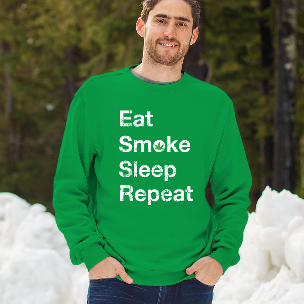 Eat Smoke Sleep Repeat design with weed leaf humor. Great for 420 fans, stoners, sesh lovers, smokers, and relaxed cannabis vibes.
