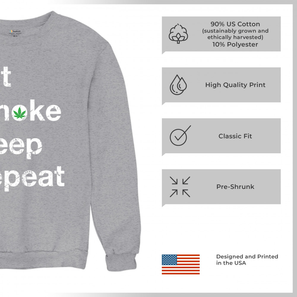 Eat Smoke Sleep Repeat design with weed leaf humor. Great for 420 fans, stoners, sesh lovers, smokers, and relaxed cannabis vibes.