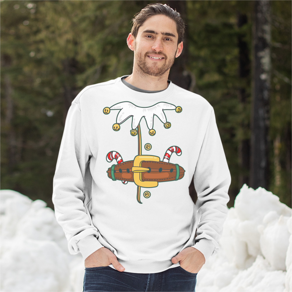 A print designed as an elven costume with two candy canes in his belt. Amazing choice to have fun and spread positive vibes on Christmas Eve.