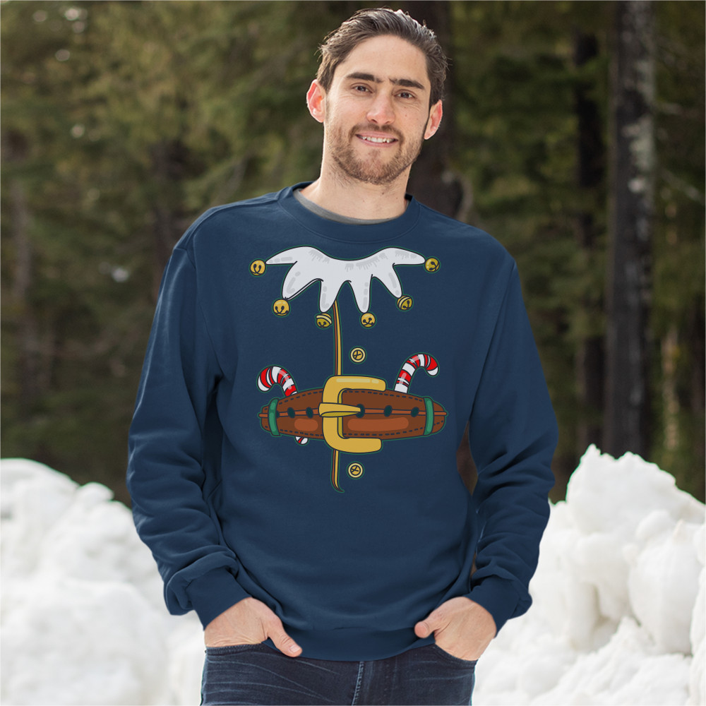 A print designed as an elven costume with two candy canes in his belt. Amazing choice to have fun and spread positive vibes on Christmas Eve.