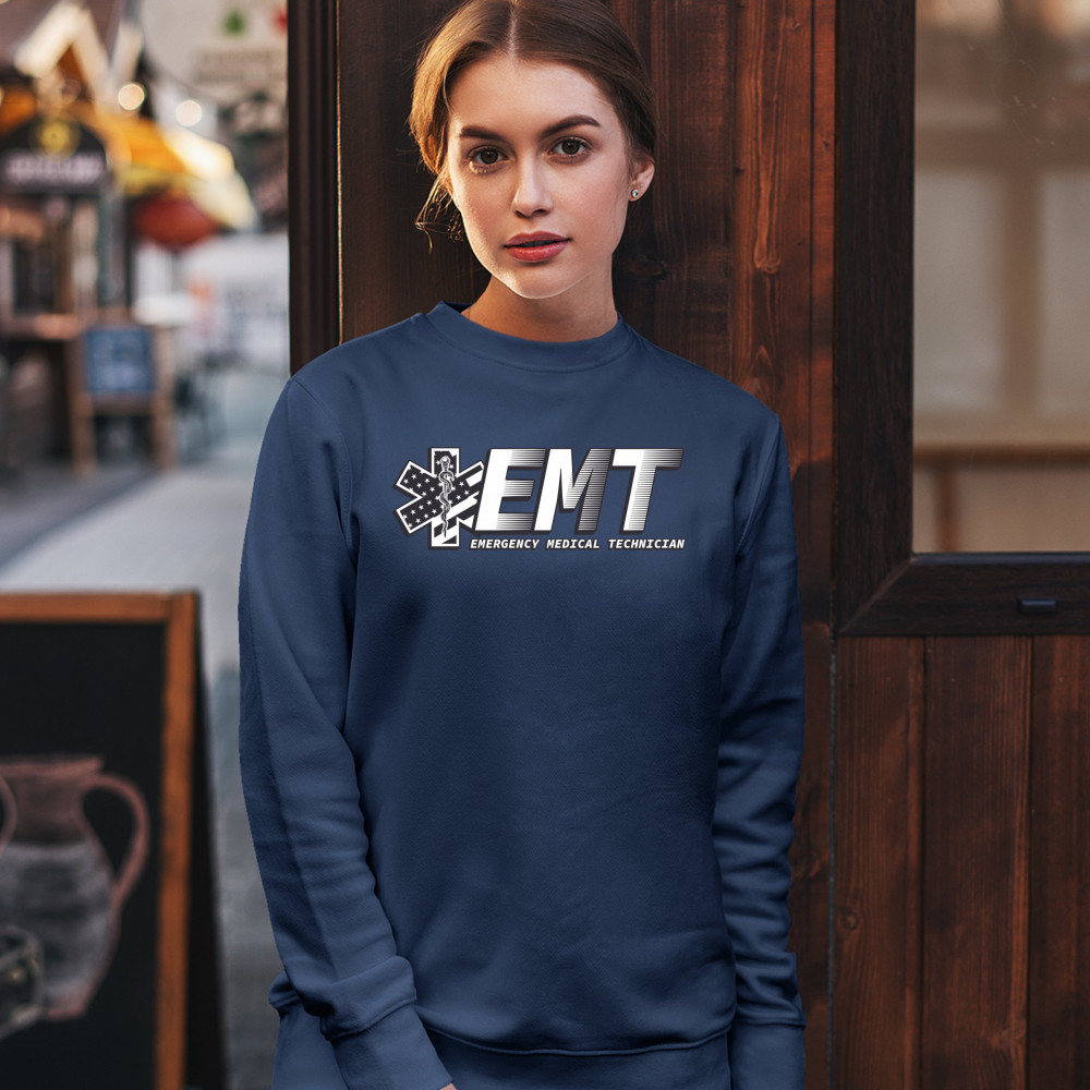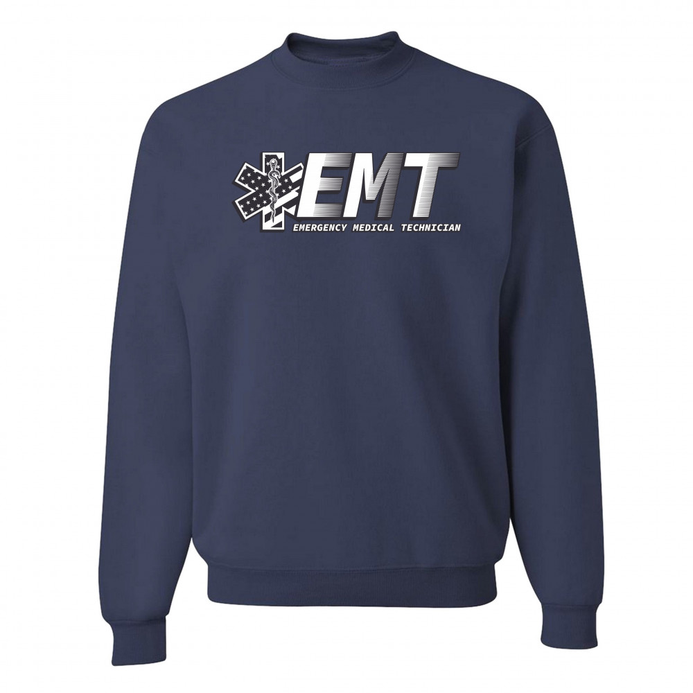 EMT EMERGENCY MEDICAL TECHNICIAN sweatshirt ems paramedic star of life crewneck navy blue