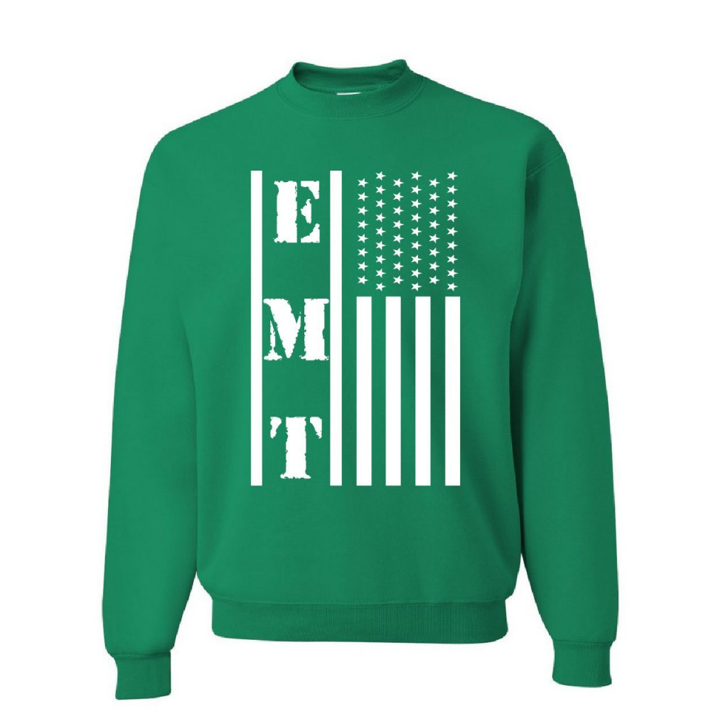 EMT STARS AND STRIPES sweatshirt first responders paramedic ems sweater green