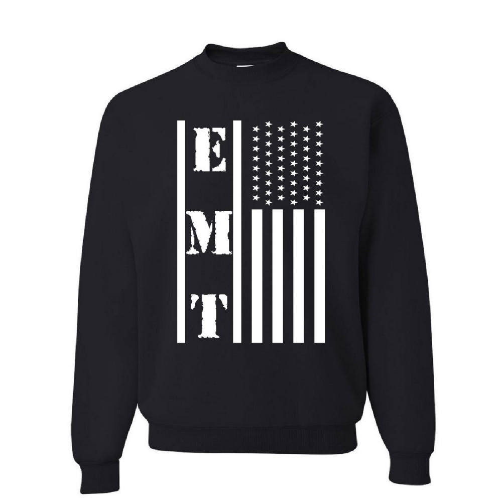 EMT STARS AND STRIPES sweatshirt first responders paramedic ems sweater black