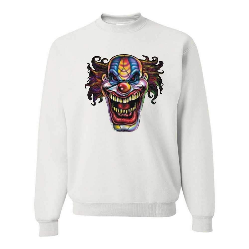 MAD EVIL CLOWN FACE crew neck sweatshirt scary horror insane joker white
