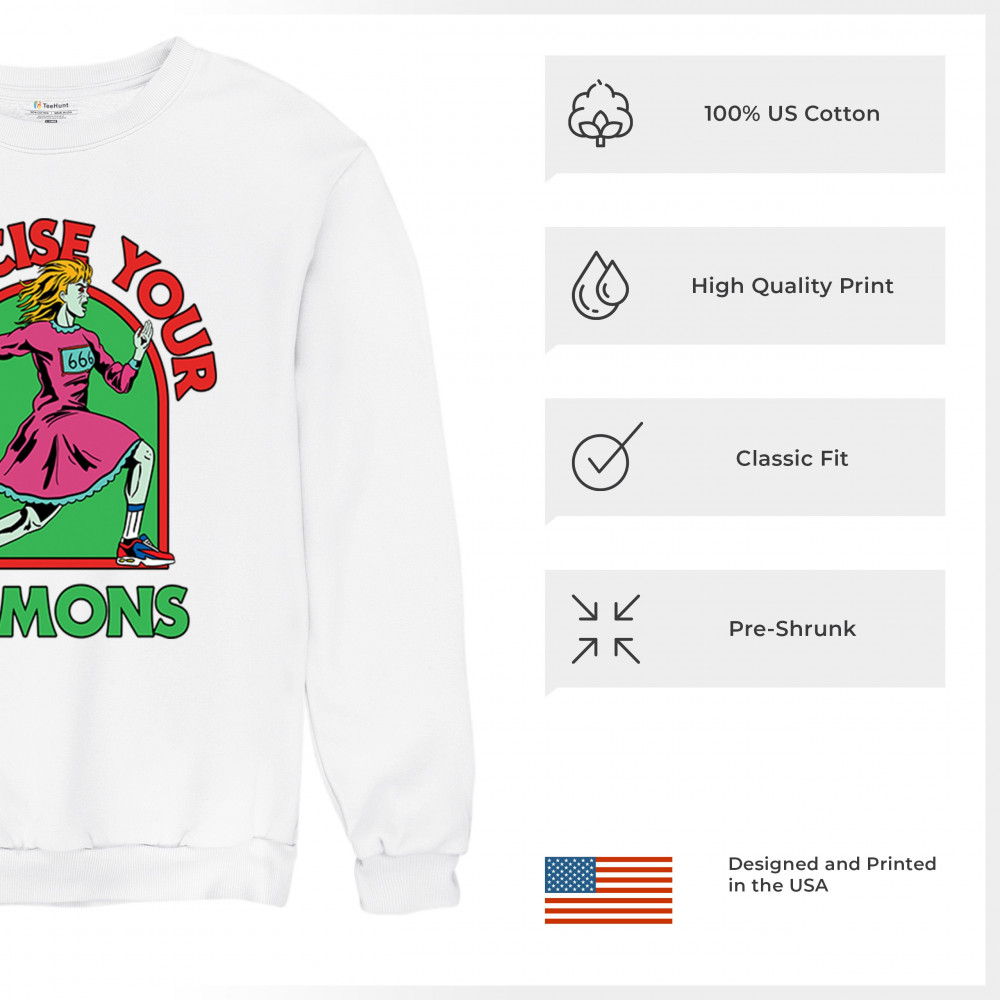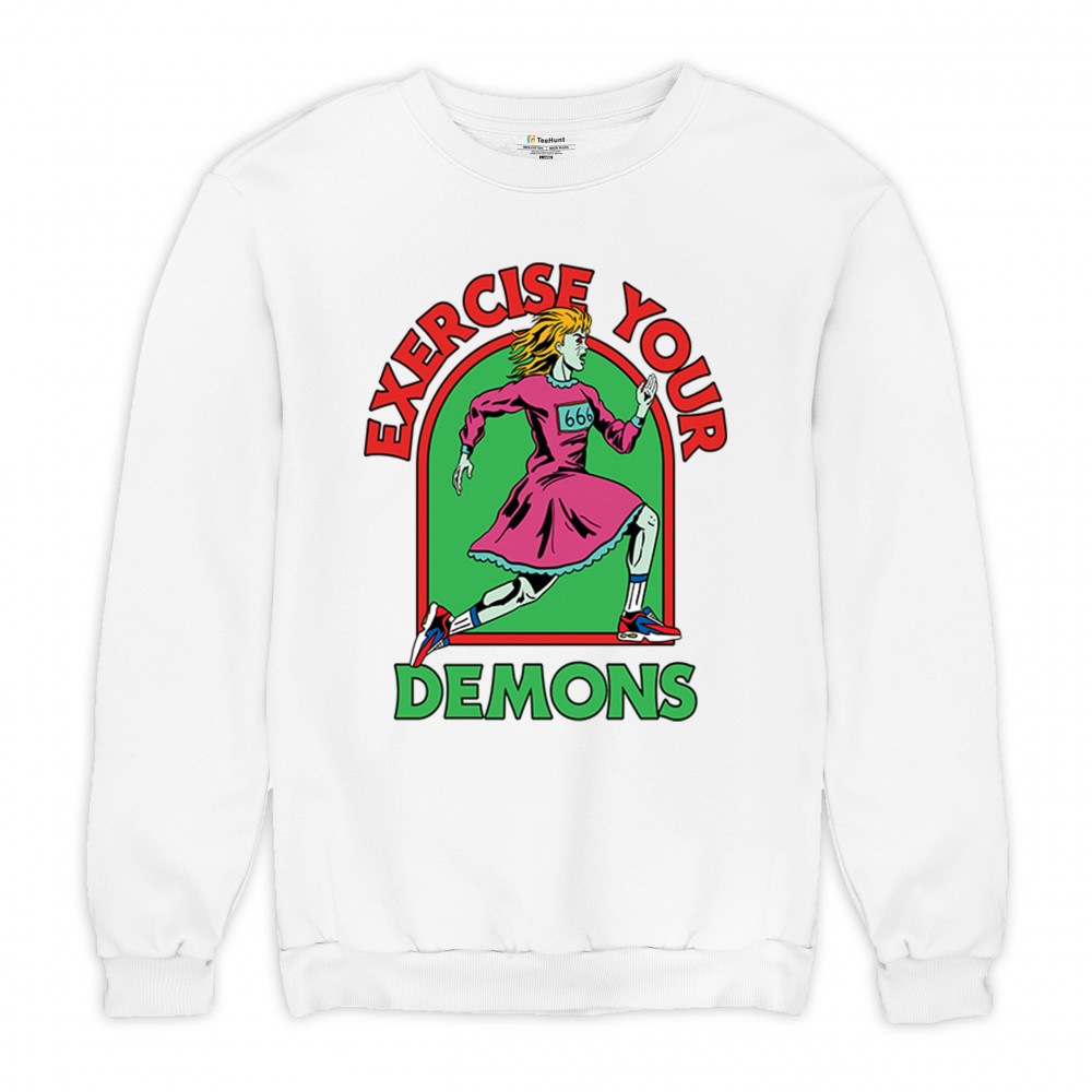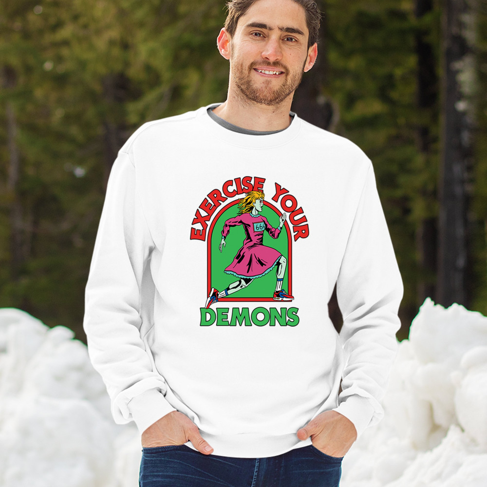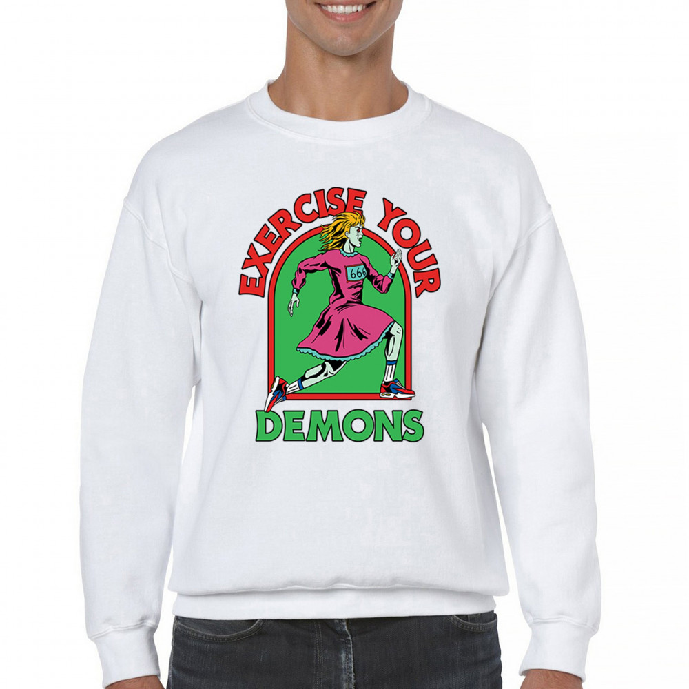 Exercise Your Demons shirt – funny halloween gym shirt with fitness humor, scary workout design, demon runner style, and spooky parody vibes.