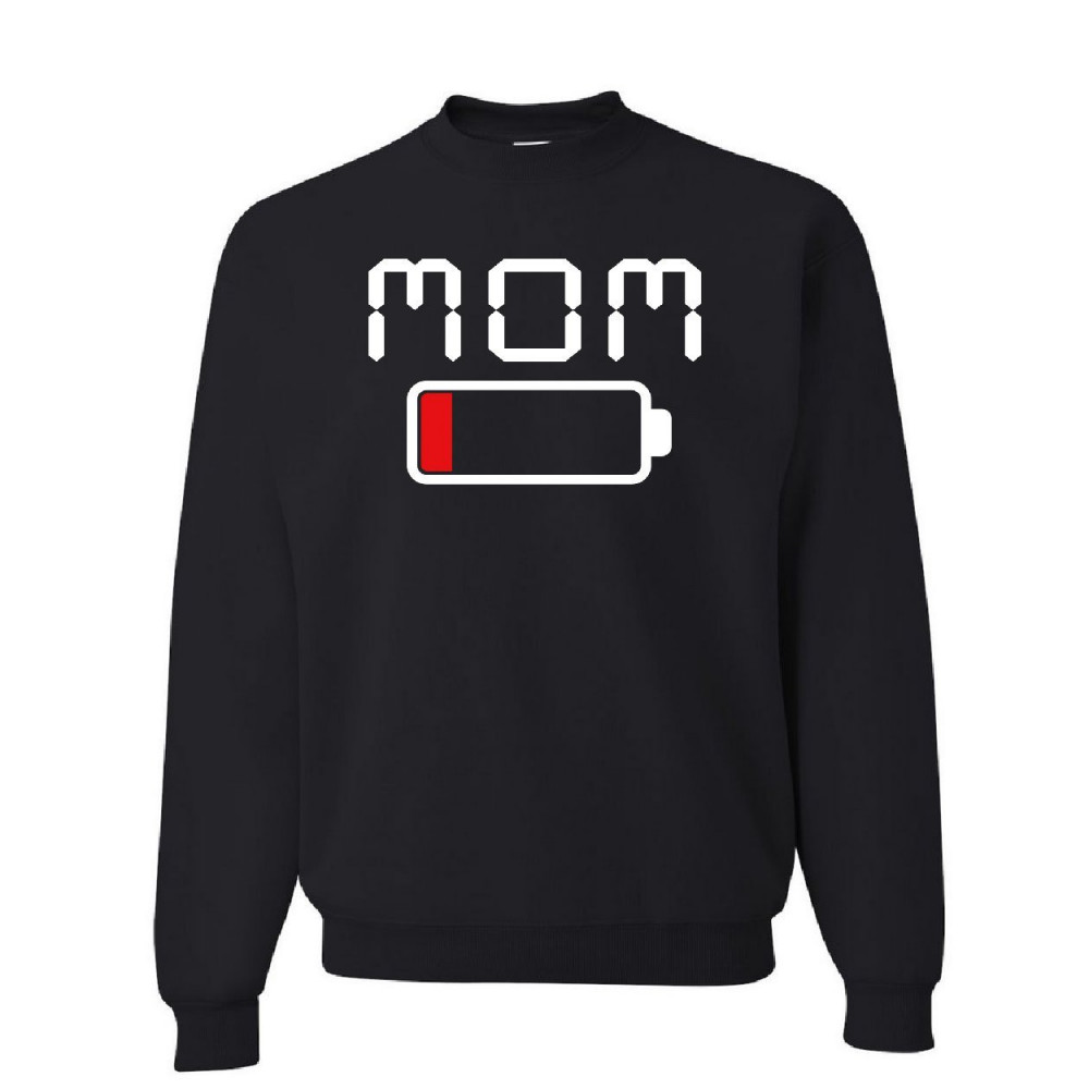 EXHAUSTED MOM LOW BATTERY sweatshirt mother's day low energy coffee sweater black