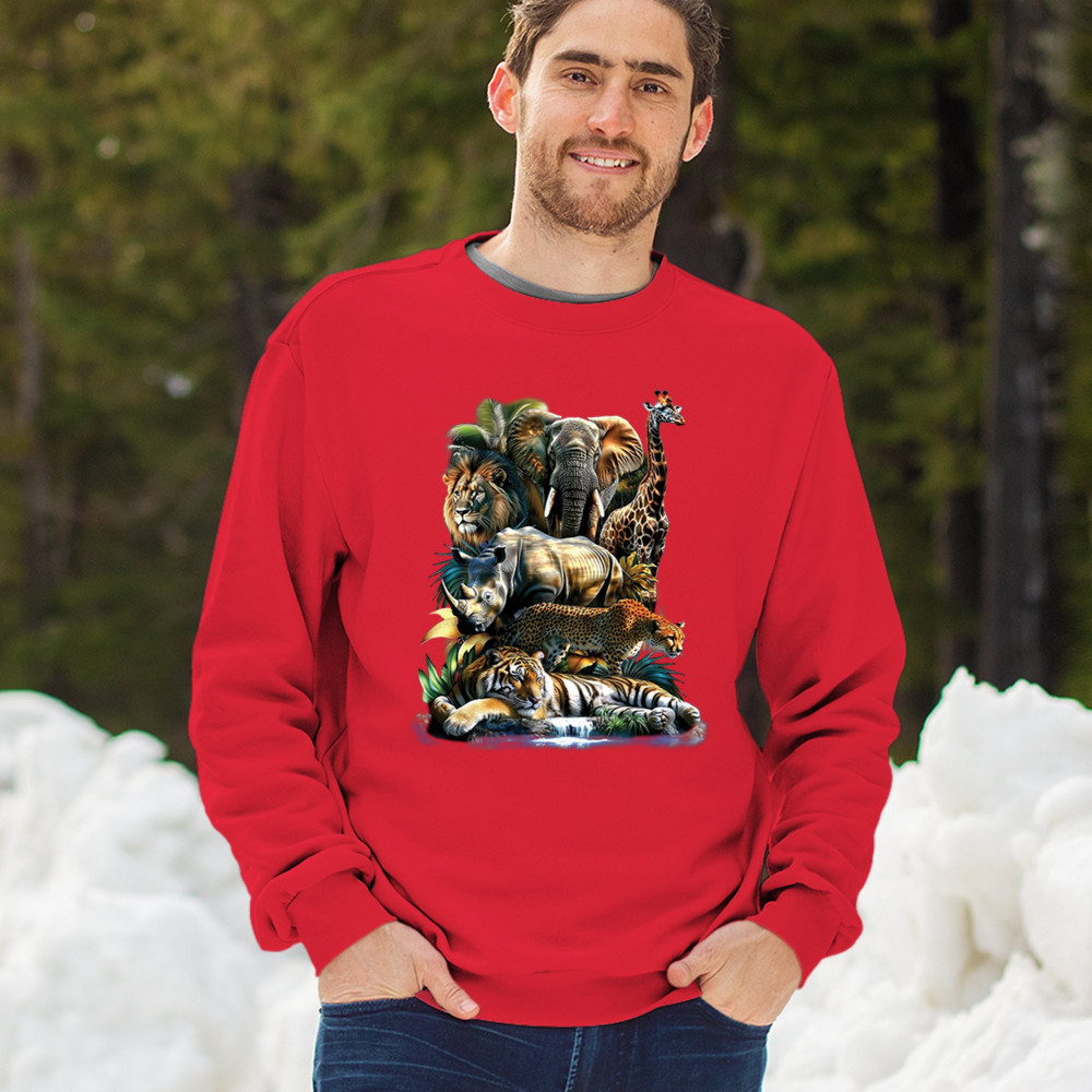 Wildlife design with lion, tiger, giraffe, rhino, cheetah, and elephant. Perfect for animal lovers and safari fans who embrace nature’s fierce spirit.