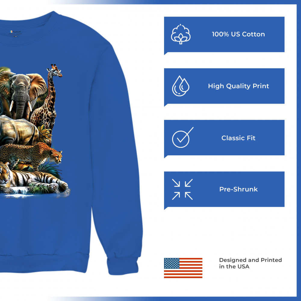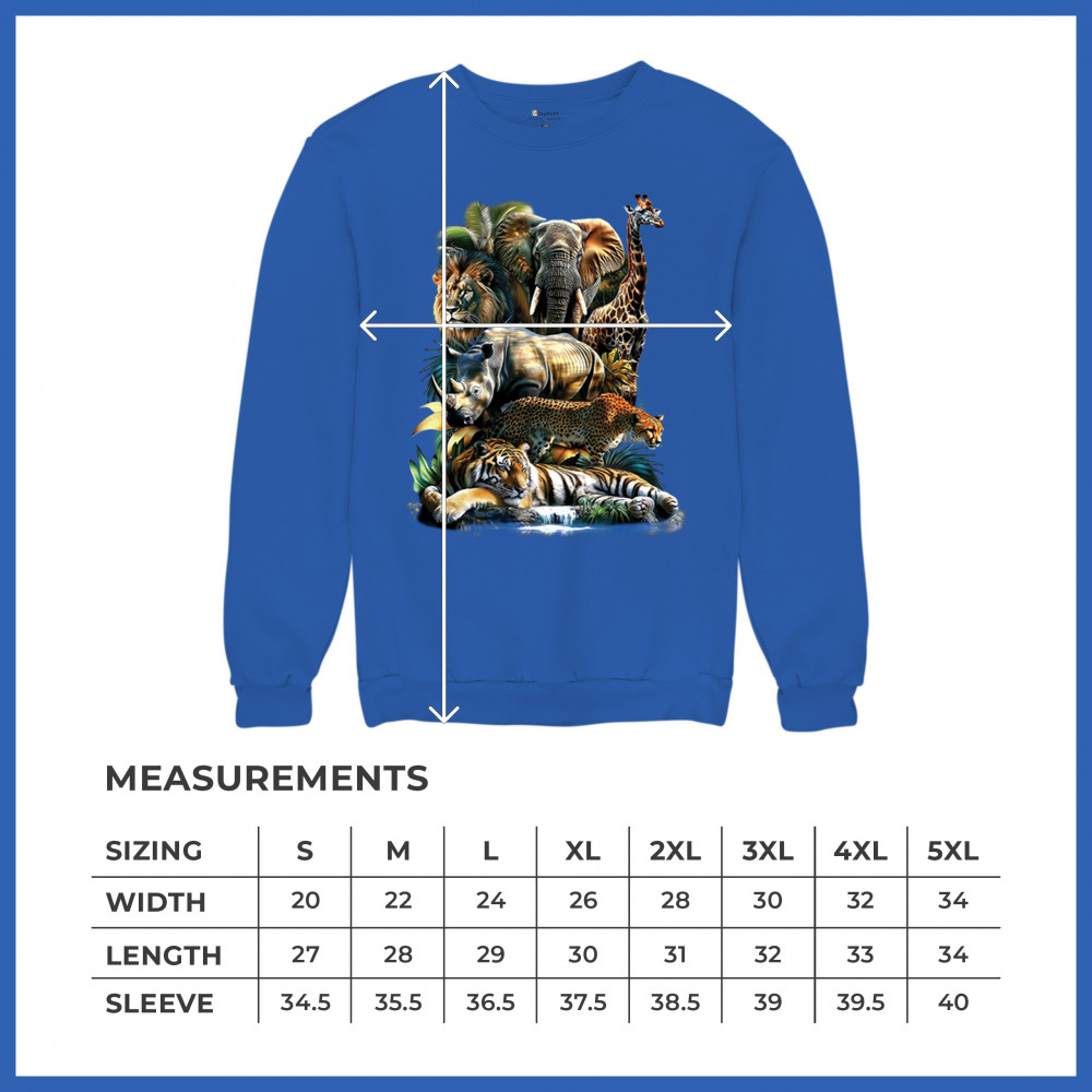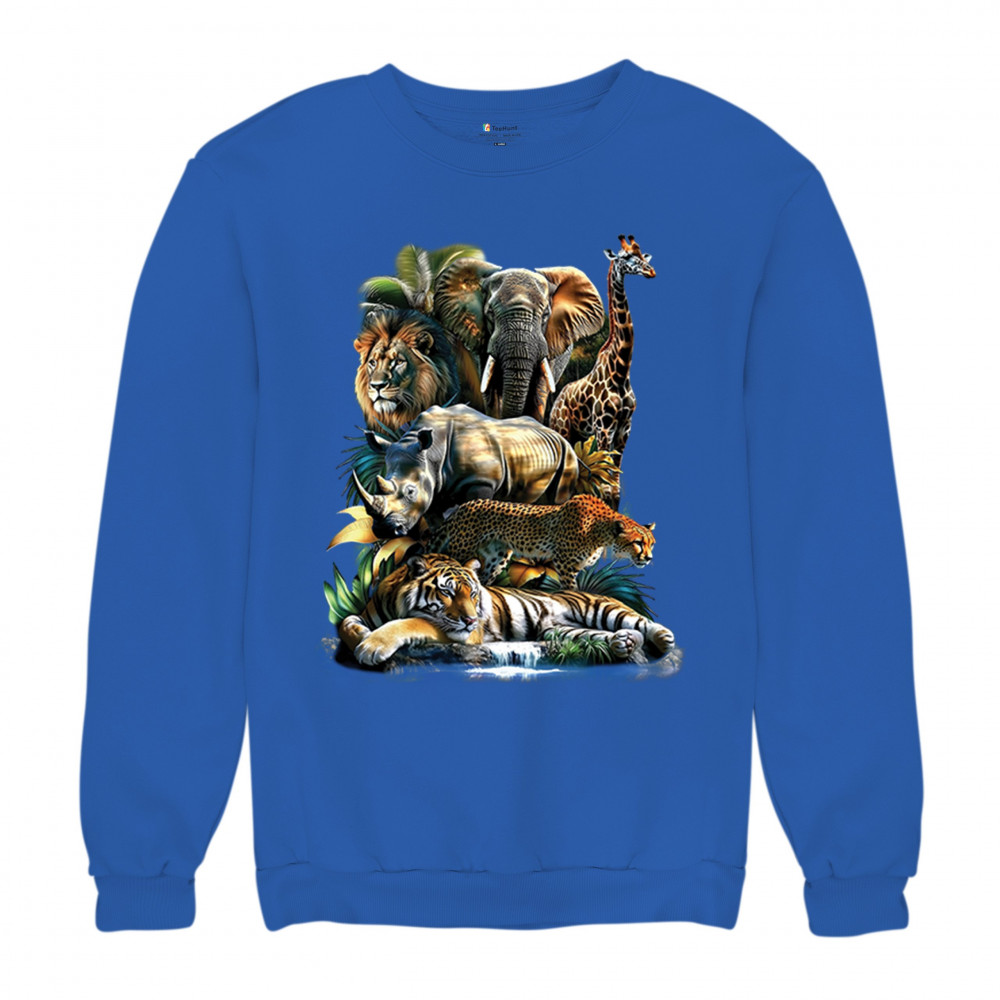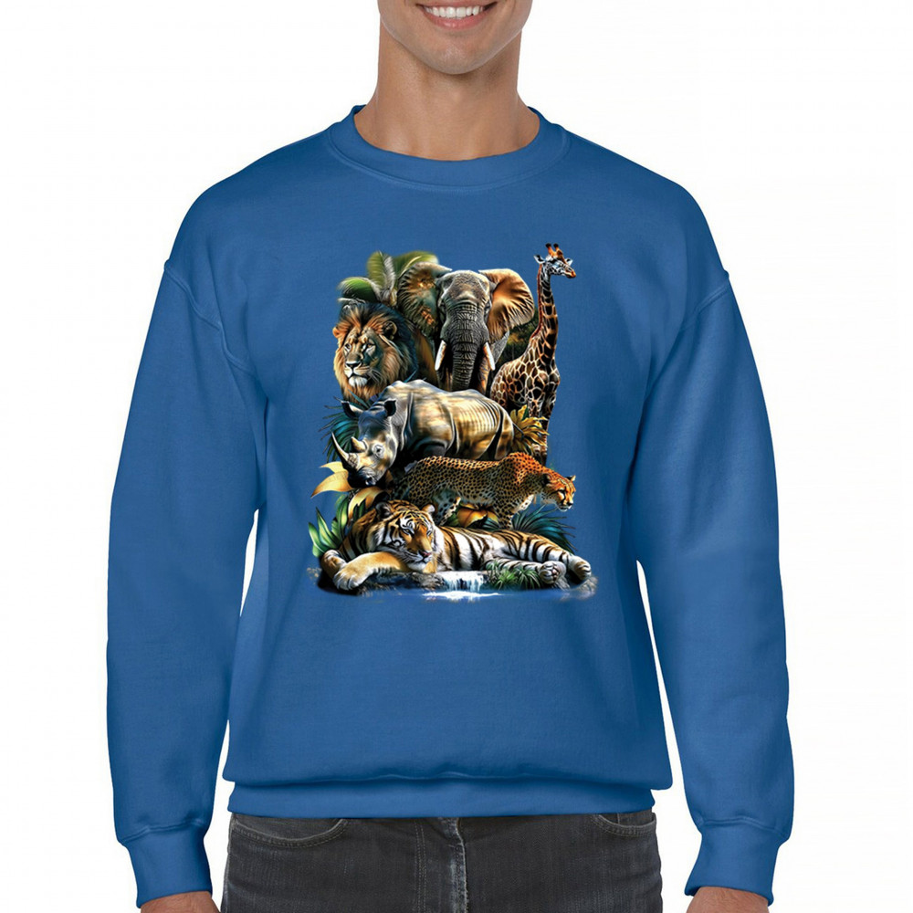 Wildlife design with lion, tiger, giraffe, rhino, cheetah, and elephant. Perfect for animal lovers and safari fans who embrace nature’s fierce spirit.