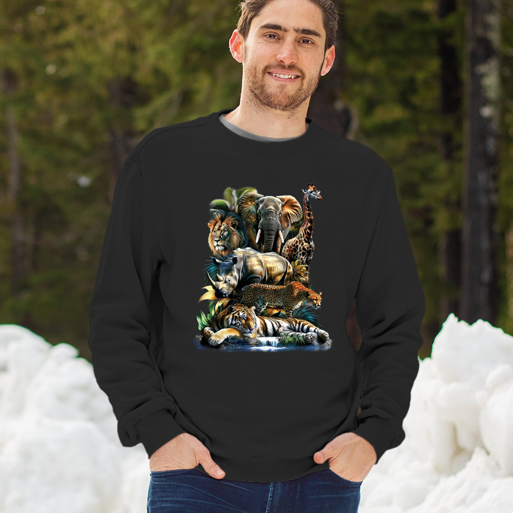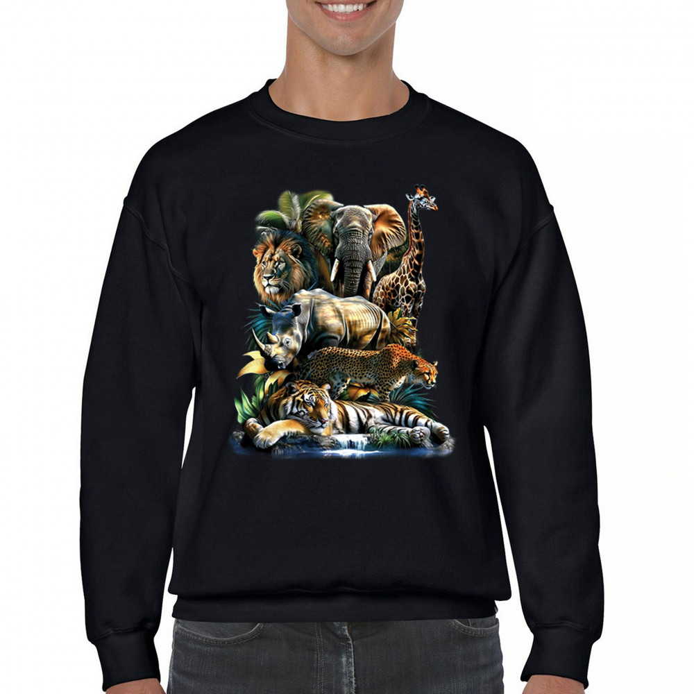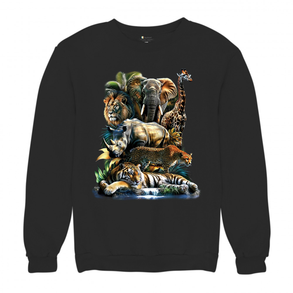 EXOTIC COLLAGE sweatshirt jungle safari animal wild nature lion tiger crewneck black