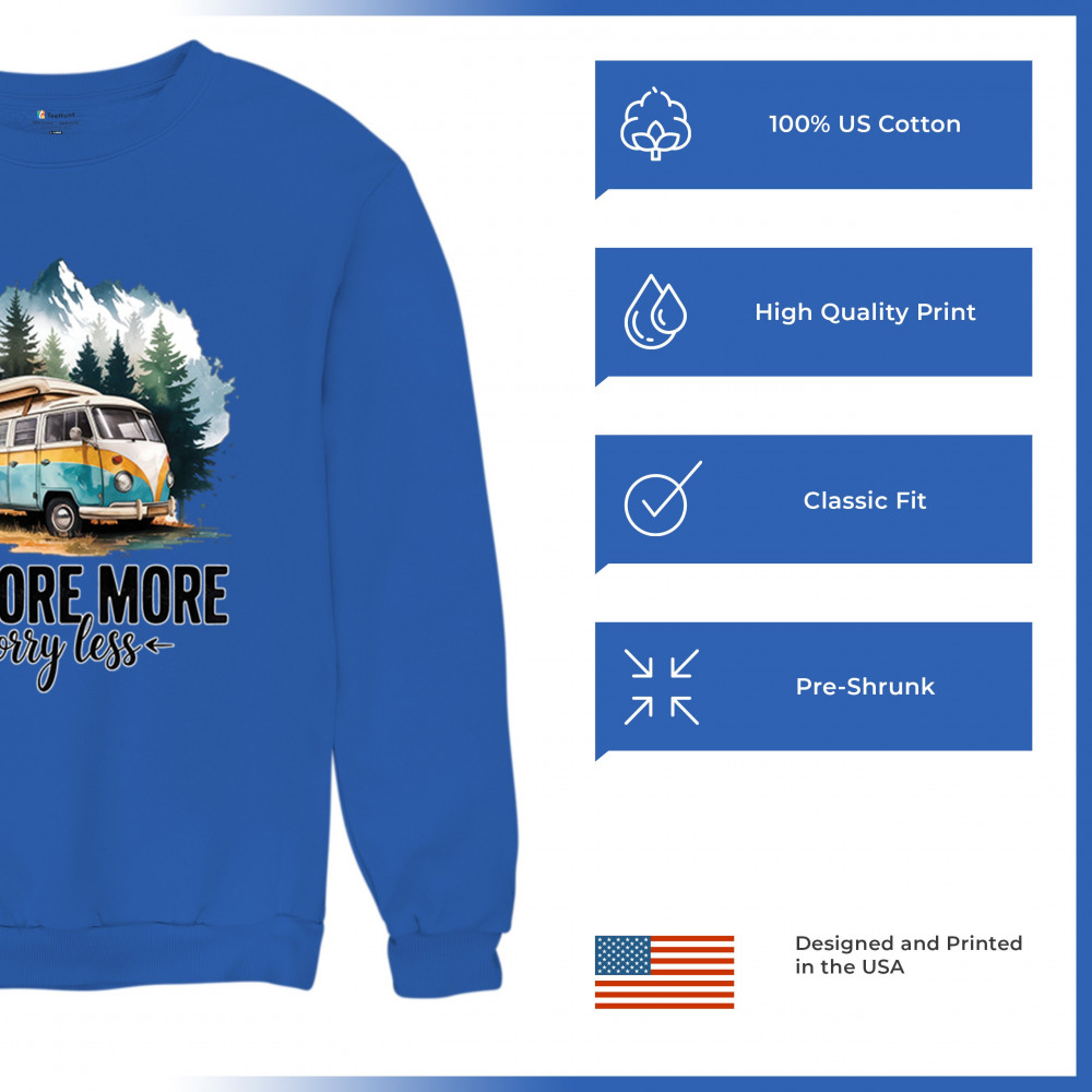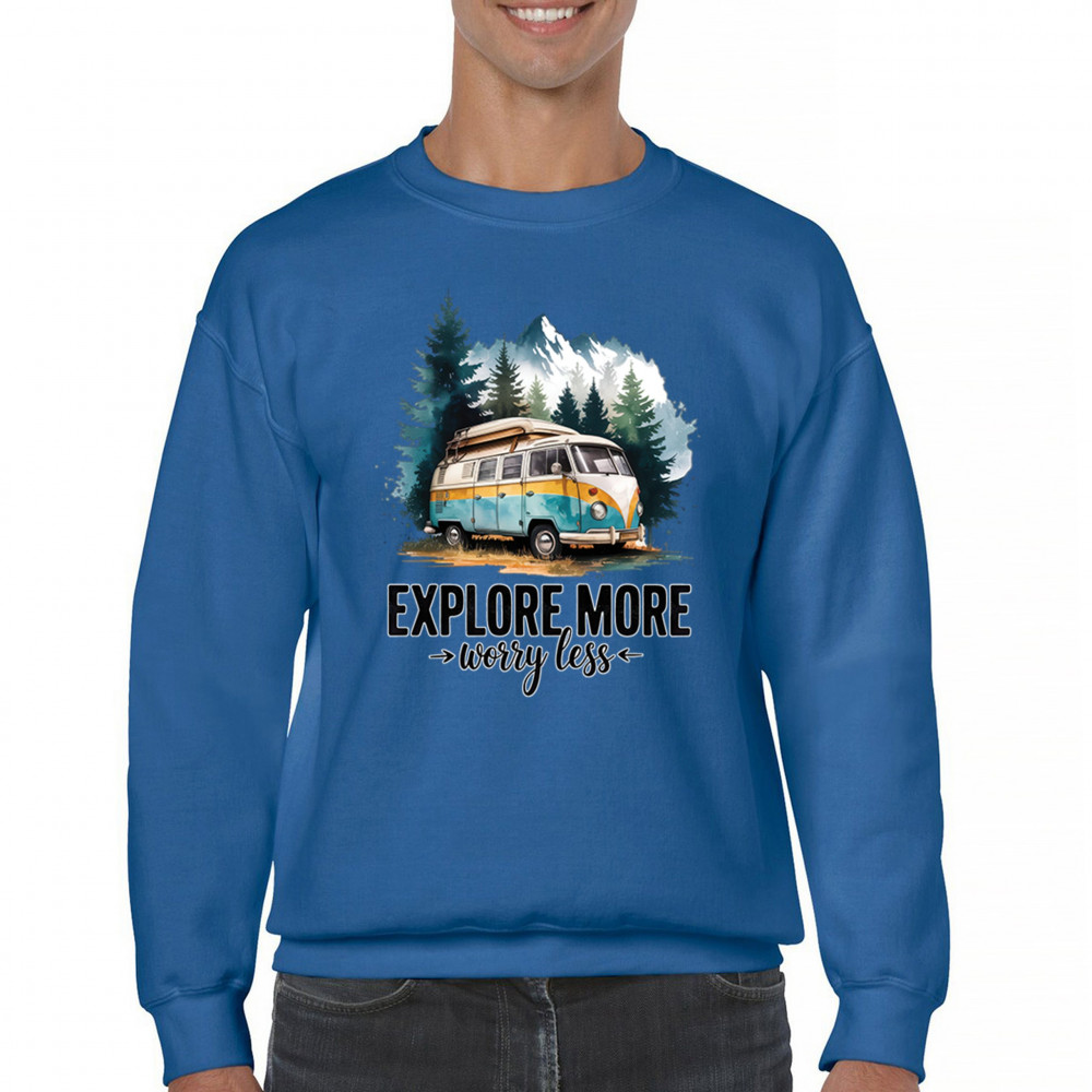 Explore More Worry Less is made for the outdoor soul—celebrating trail lovers, weekend hikers, and national park explorers. Whether you're into off-grid adventures or glamping with family, this design fits your lifestyle. Embrace nature, campfire moments, and wilderness vibes with a look built for your next escape.
