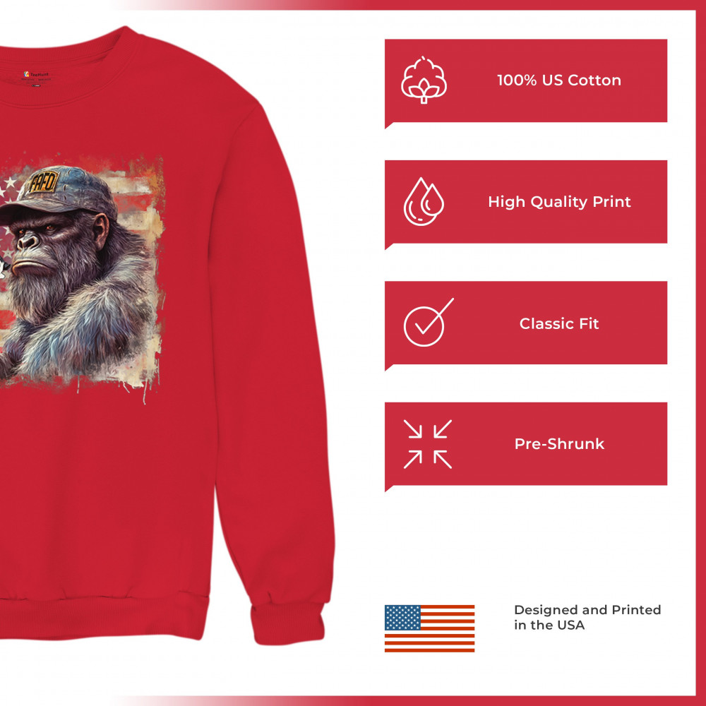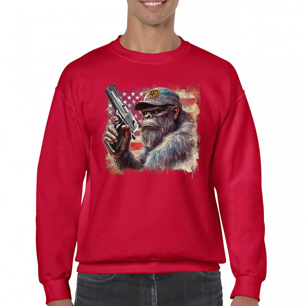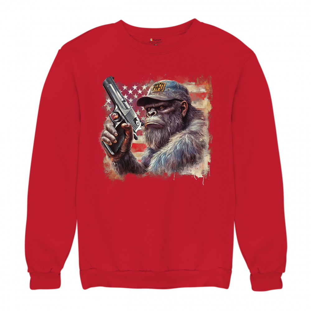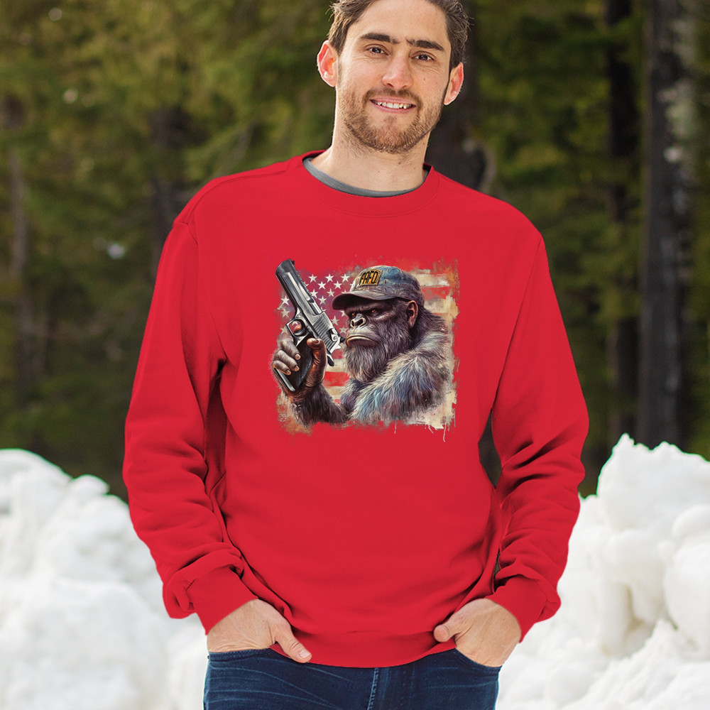 Show your Second Amendment pride with this bold patriotic gorilla design featuring the American flag and a firearm. Perfect for gun rights supporters, veterans, and freedom lovers.