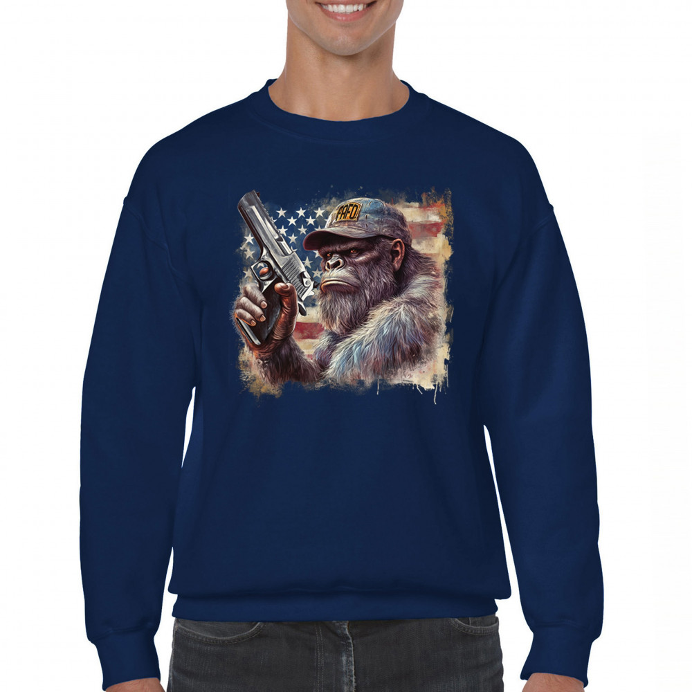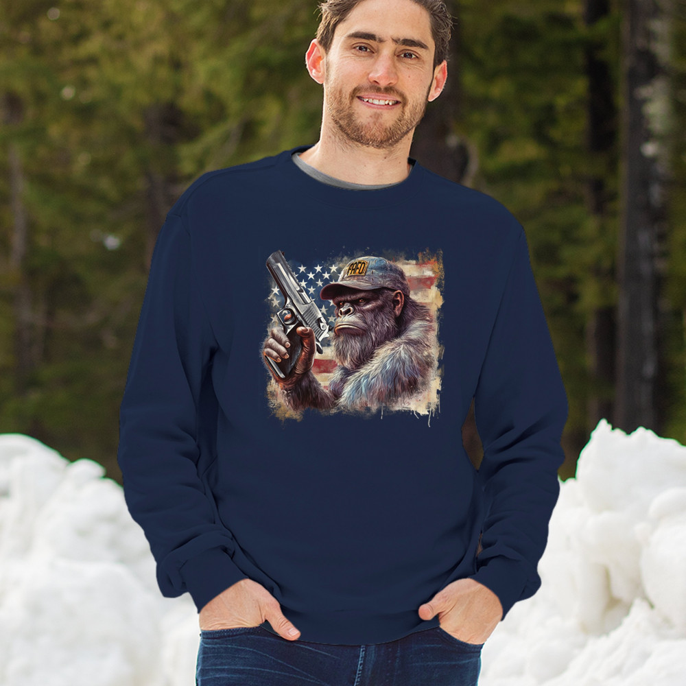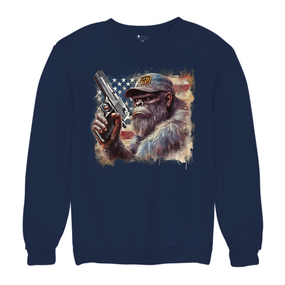 Show your Second Amendment pride with this bold patriotic gorilla design featuring the American flag and a firearm. Perfect for gun rights supporters, veterans, and freedom lovers.