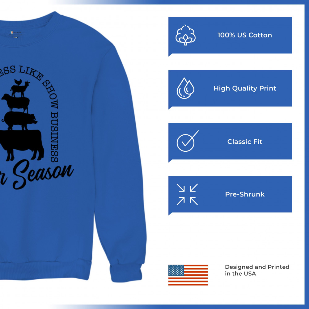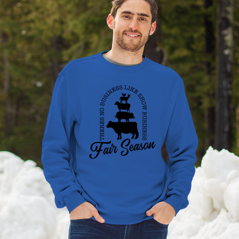 Embrace the spirit of fair season with our "Fair Season" design, ideal for anyone who loves farm animals and the excitement of fairs. Featuring silhouettes of a chicken, goat, sheep, and cow stacked together, this design brings a touch of whimsy and fun to any occasion. Perfect for 4-H members, farmers, and fair enthusiasts, it's a great way to express your love for agricultural fairs and farm life. This design makes an excellent gift, capturing the essence of show business and the joy of the fair season.