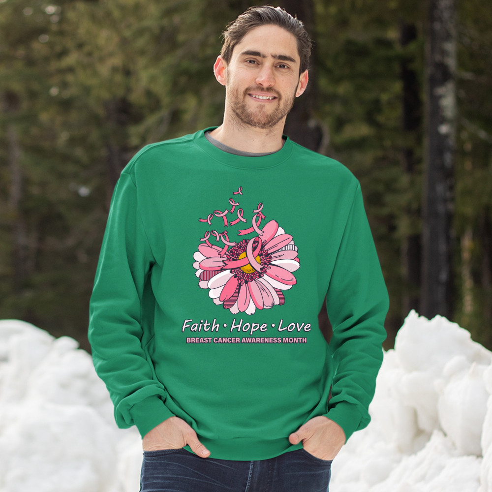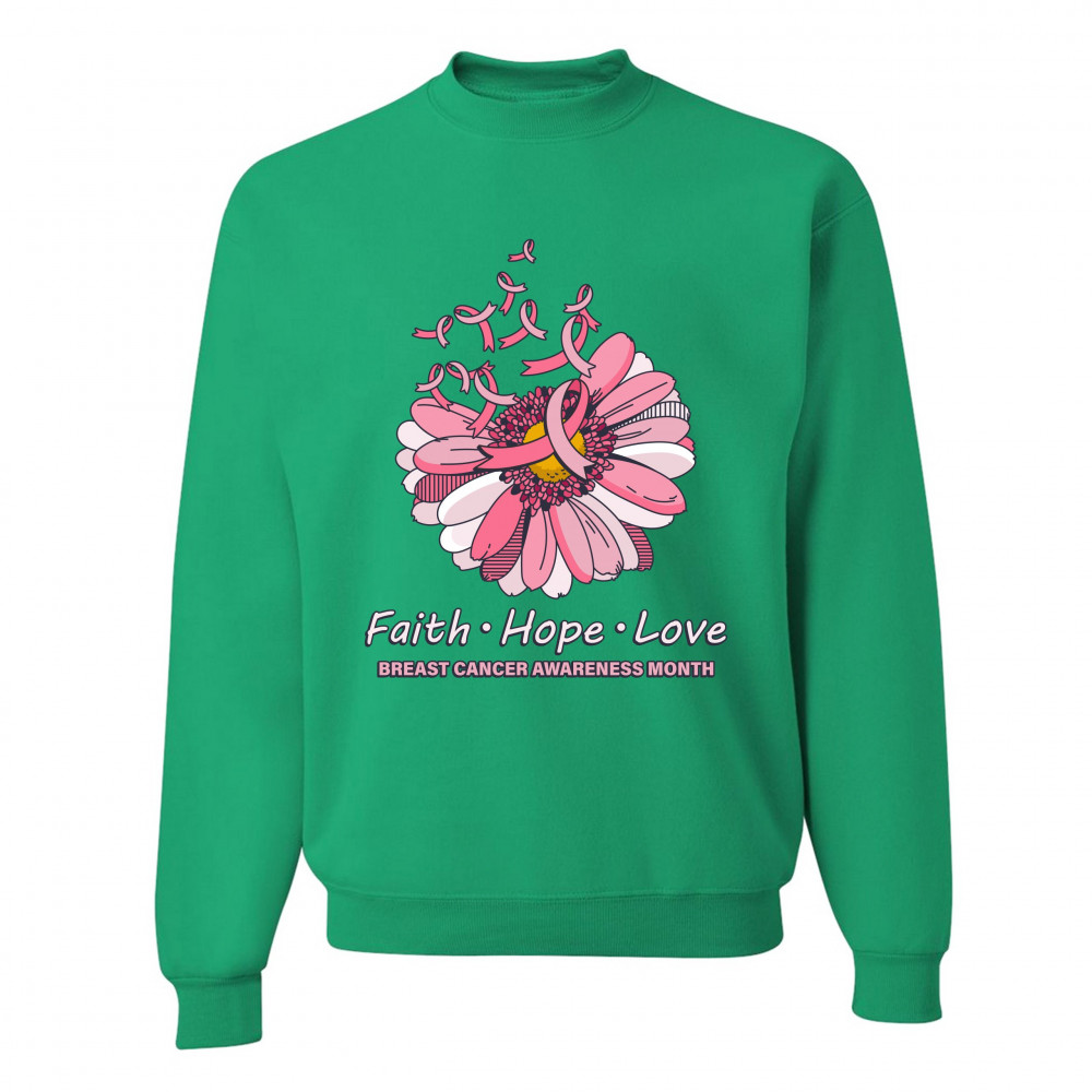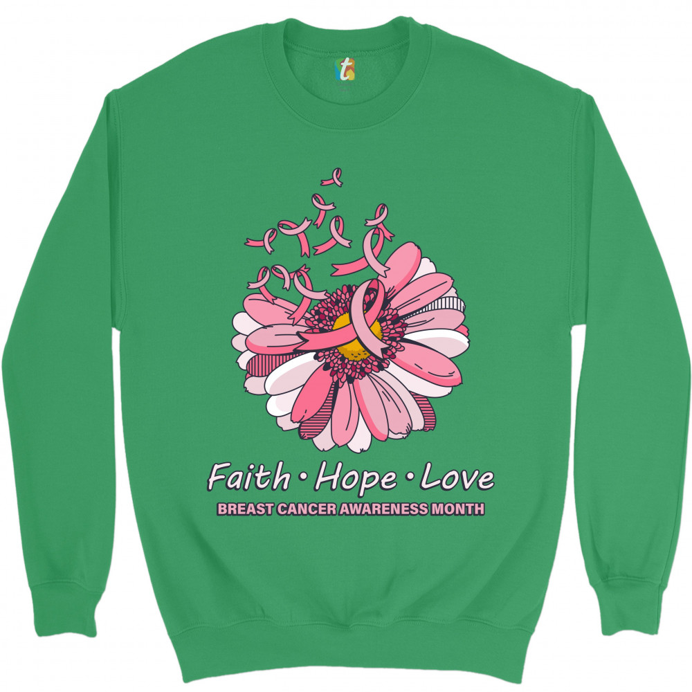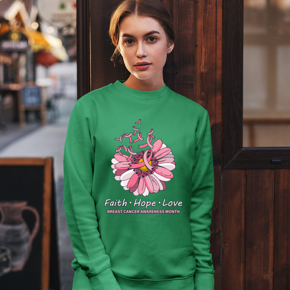 FAITH HOPE LOVE sweatshirt breast cancer awareness month ribbon flower crewneck green