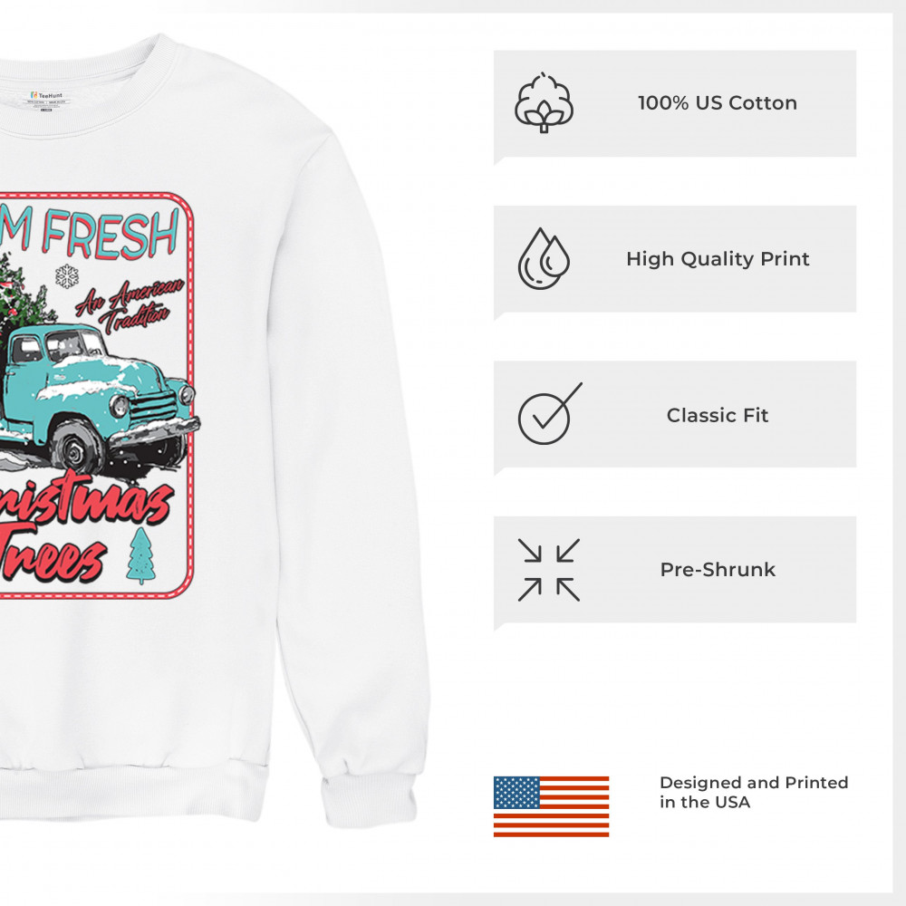 Celebrate the warmth and joy of the holiday season with the "Farm Fresh Christmas Trees" design, a nod to timeless American Christmas traditions. Perfect for matching family outfits, cozy holiday mornings, Secret Santa gifts, or adding a festive touch to any event, this design embodies the spirit of Christmas. From Rudolph and Santa to cozy evenings by the tree, let this design be part of your family’s holiday tradition.