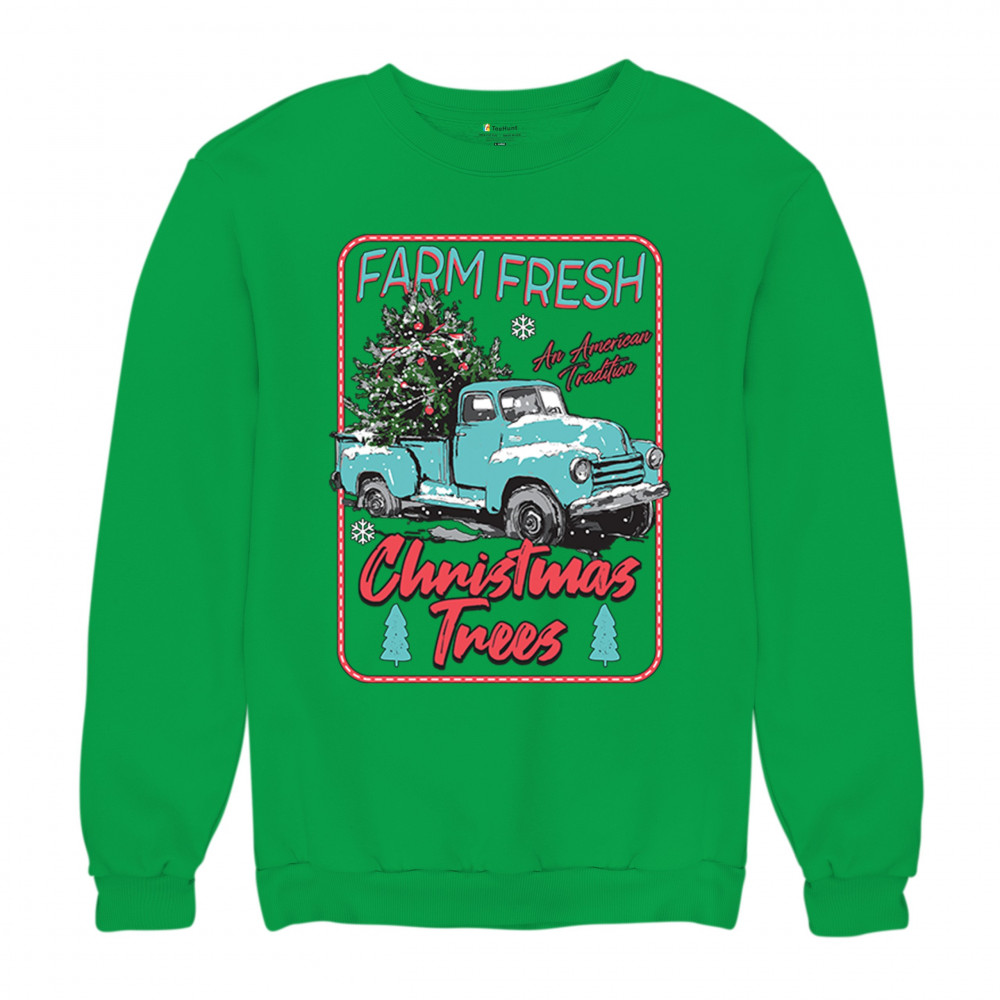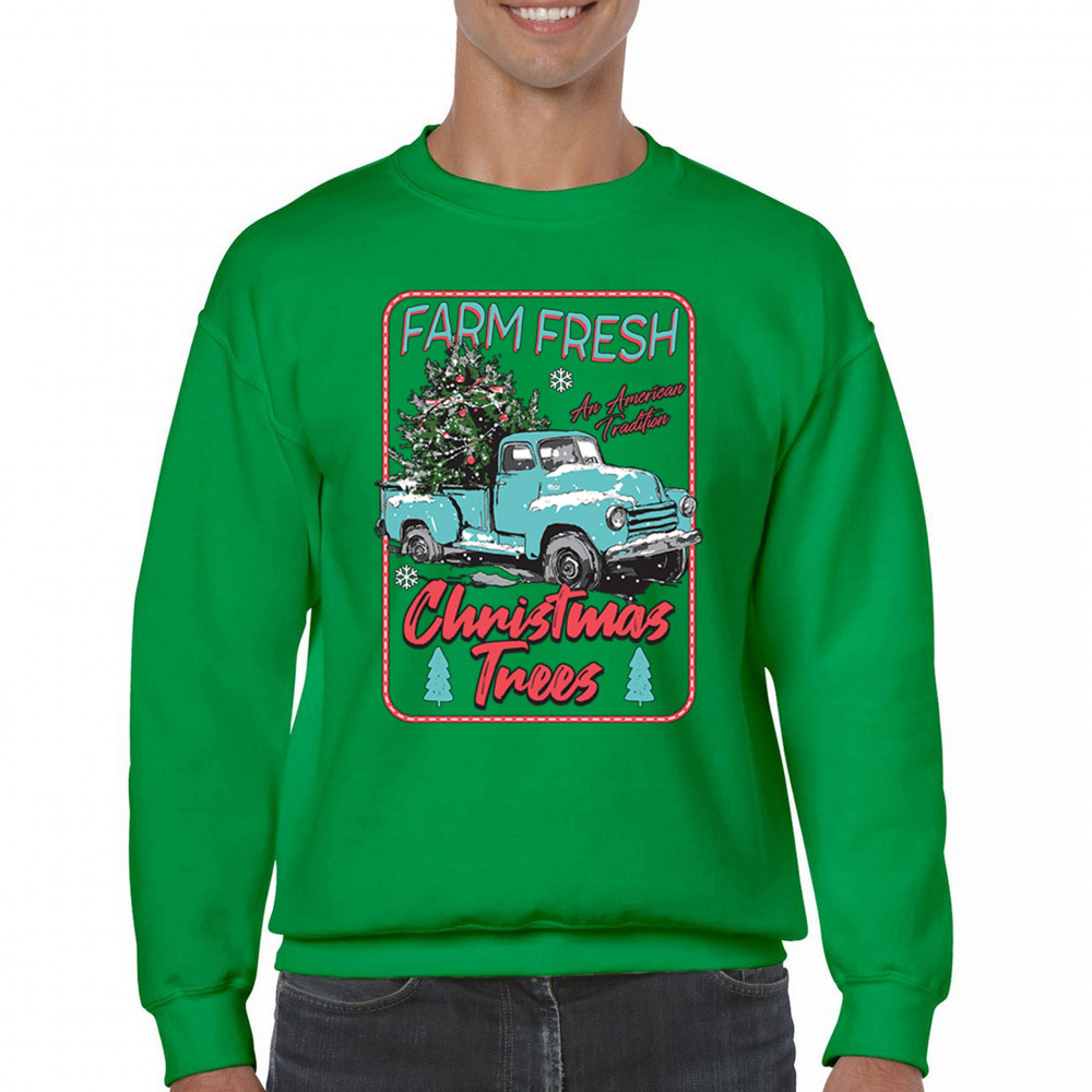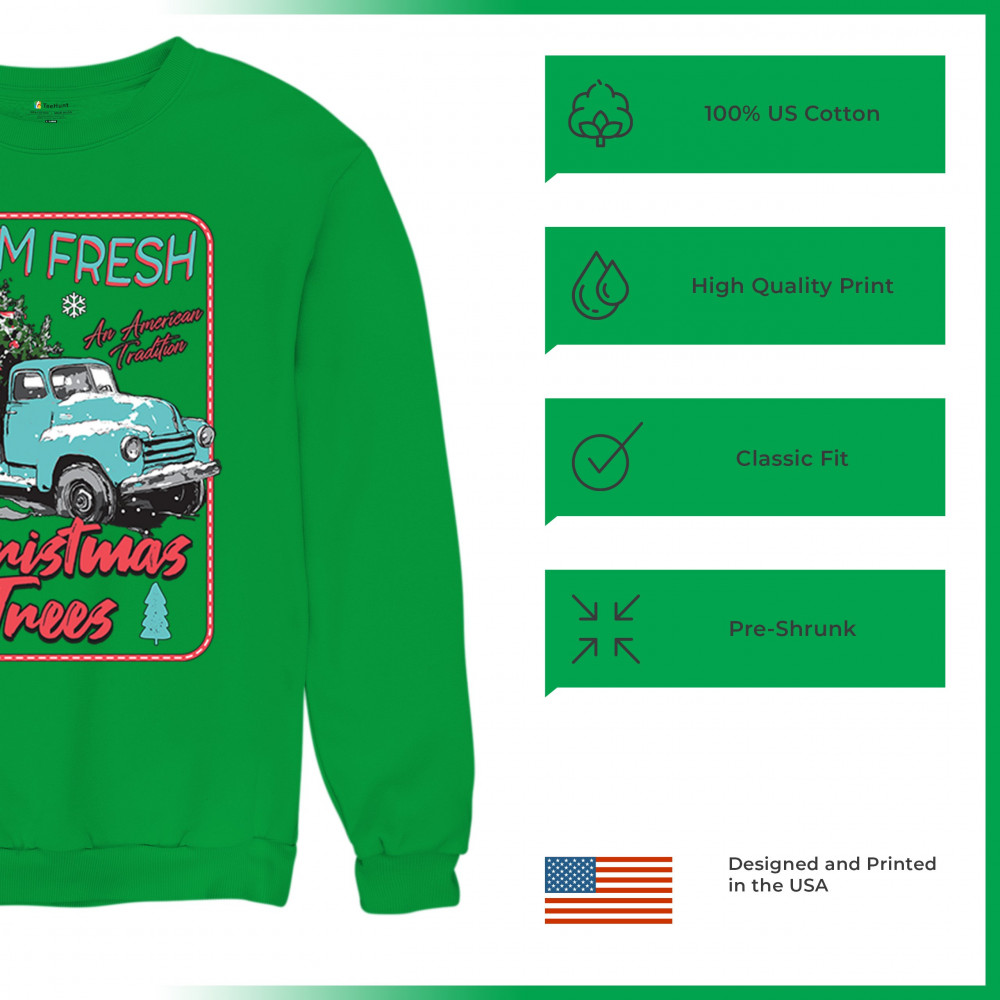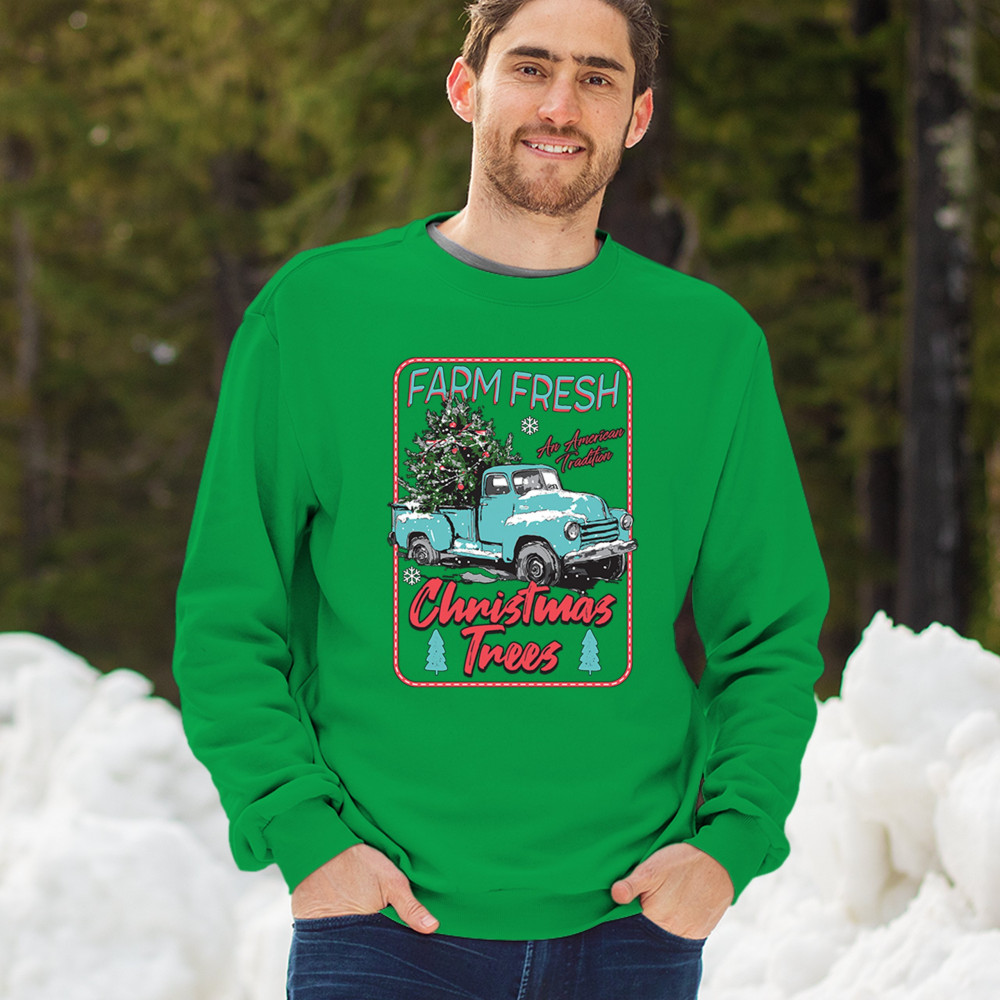 FARM FRESH CHRISTMAS TREES sweatshirt american tradition retro truck crewneck green