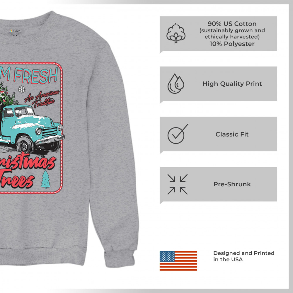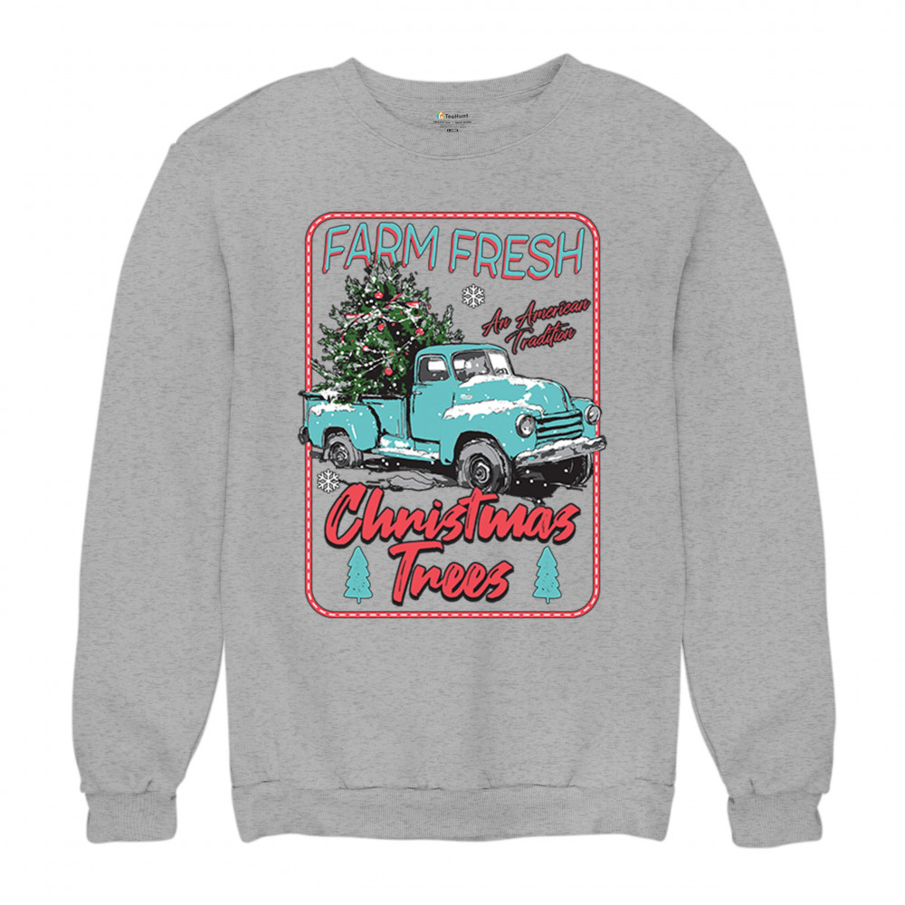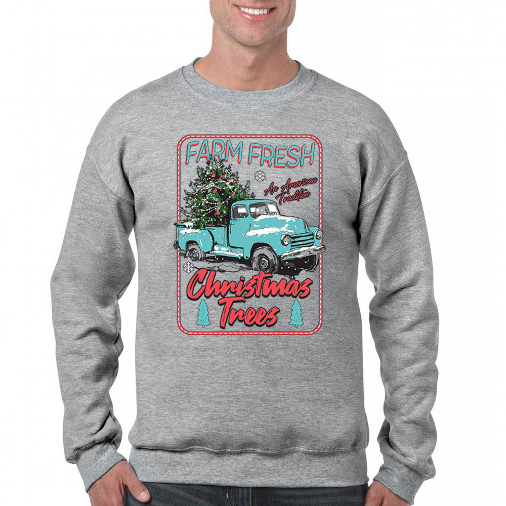 FARM FRESH CHRISTMAS TREES sweatshirt american tradition retro truck crewneck gray