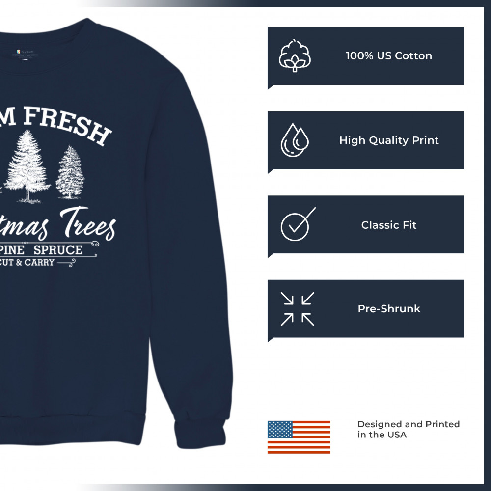 Add a nostalgic touch to your holiday celebrations with this "Farm Fresh Christmas Trees" design. Featuring fir, pine, and spruce trees, it’s ideal for Christmas lovers, matching family pajamas, or even festive gatherings. Perfect for cozy holiday mornings, Secret Santa gifts, or holiday office parties, this design brings a touch of rustic charm to any setting. Capture the spirit of the season with this delightful holiday print, designed to spread cheer and warmth.