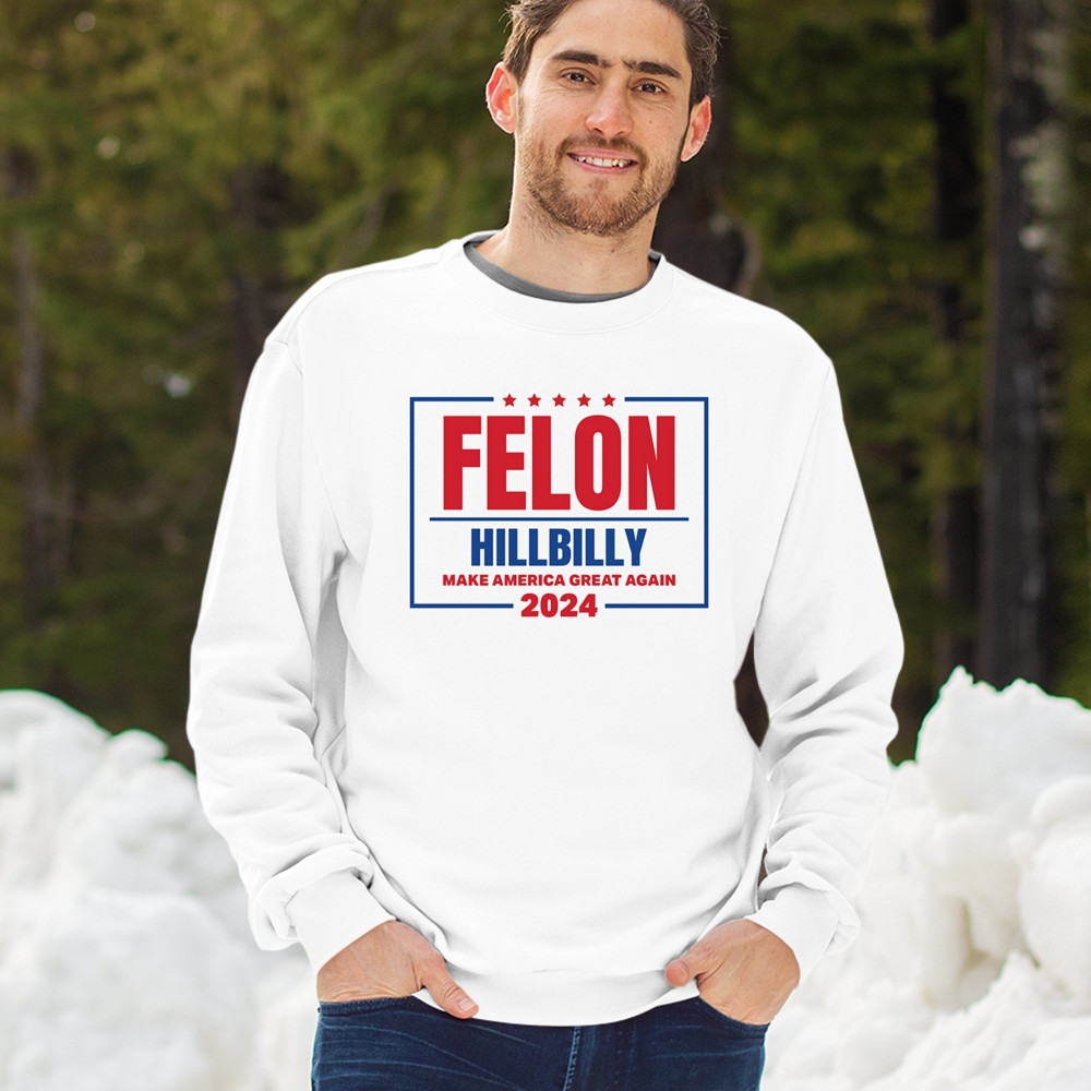 he "Felon Hillbilly 2024" design is perfect for Trump supporters, embodying conservative values and American pride.