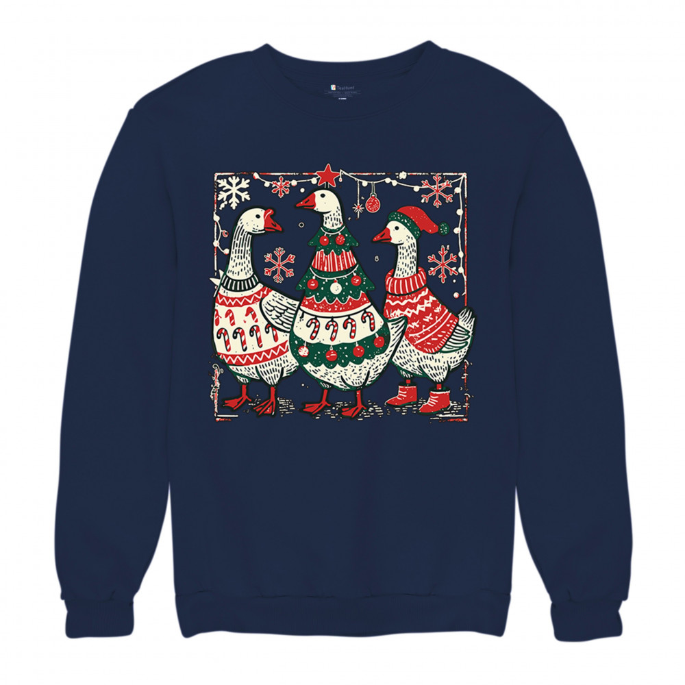 This festive goose Christmas design blends holiday humor, winter charm, and playful farm-animal personality. Featuring three geese dressed in seasonal patterns, it’s ideal for holiday parties, family gatherings, Christmas morning photos, barnyard lovers, and anyone looking for a fun seasonal graphic with cheerful holiday spirit.